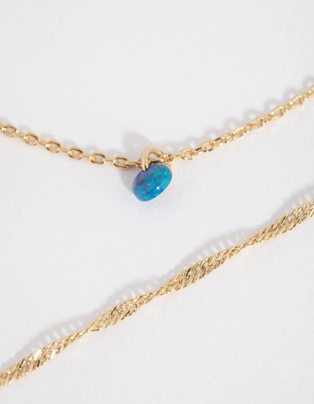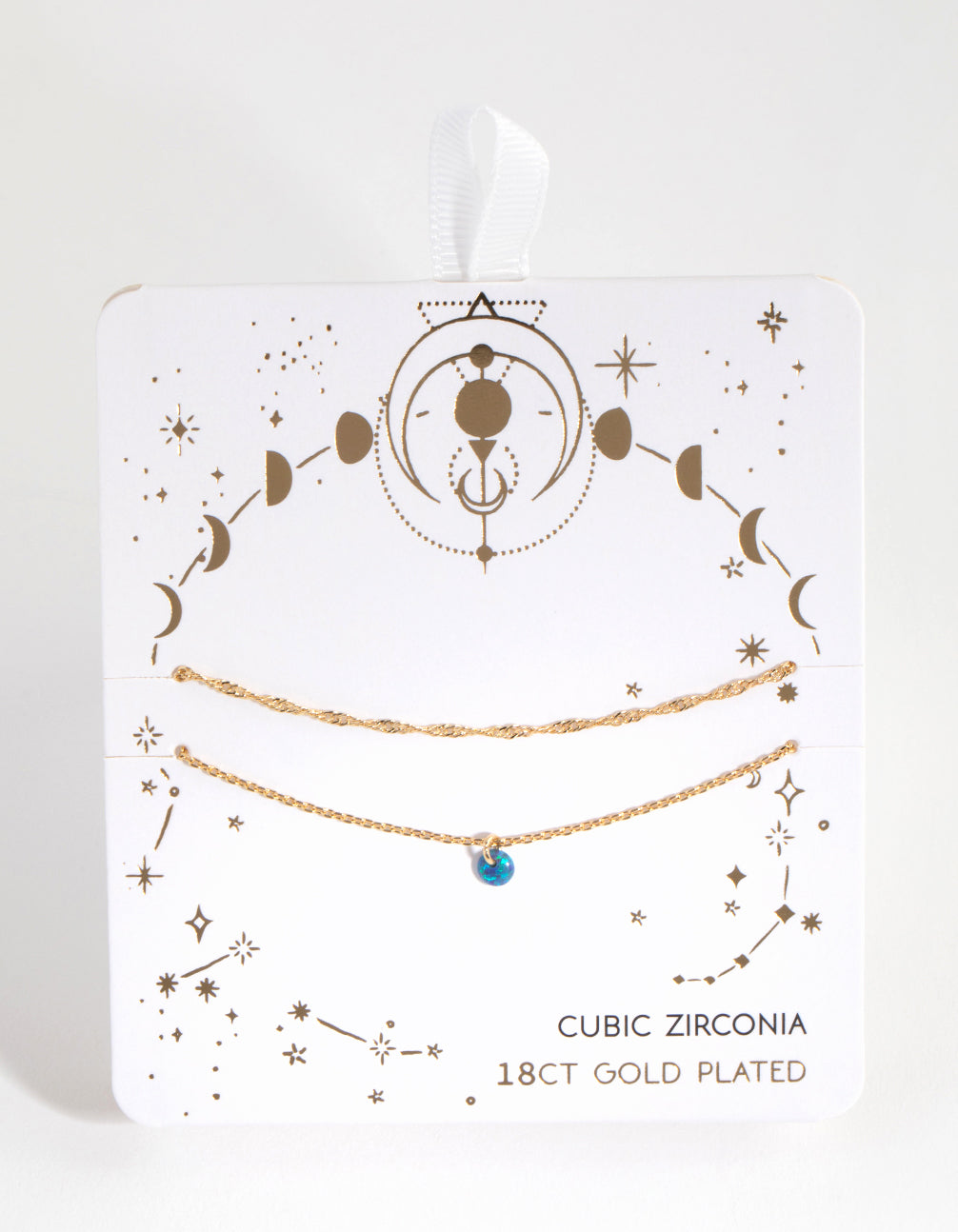 Be guided by the stars: a premium collection of thoughtful pieces that promote self-assurance and resilience through birthstones and the signs of the zodiac. This elegant bracelet set is plated with genuine 18ct gold for authentic lustre and shine. It features two dainty chain bracelets. One boasts a Singapore chain and on the other an opal gently rests on a fine cable chain. Opal is the birthstone for the month of October, and it’s believed to promote originality and creativity. Layer these lovely pieces together for daily inspiration.
