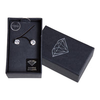 Made with Diamond Simulants - crystals that are cut to be indistinguishable to the naked eye from a true diamond.