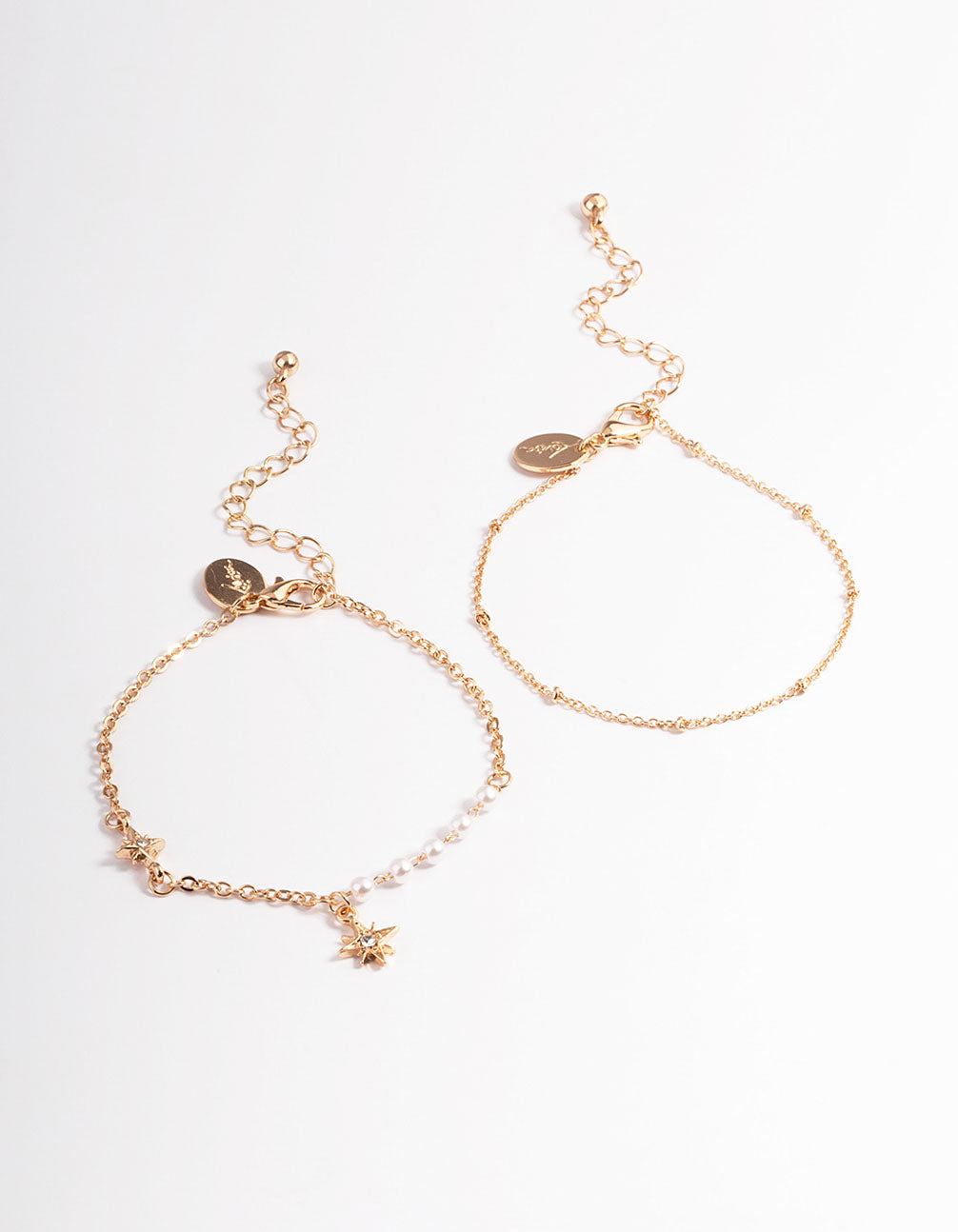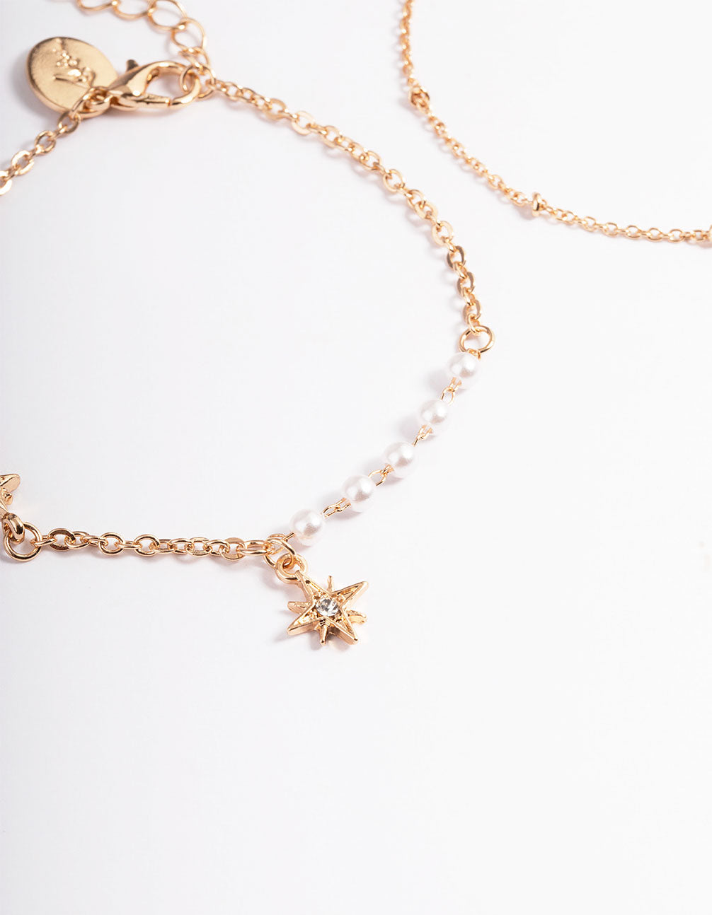 Pair this gold celestial bracelet pack with a fine chain star pendant necklace for an on-trend look.