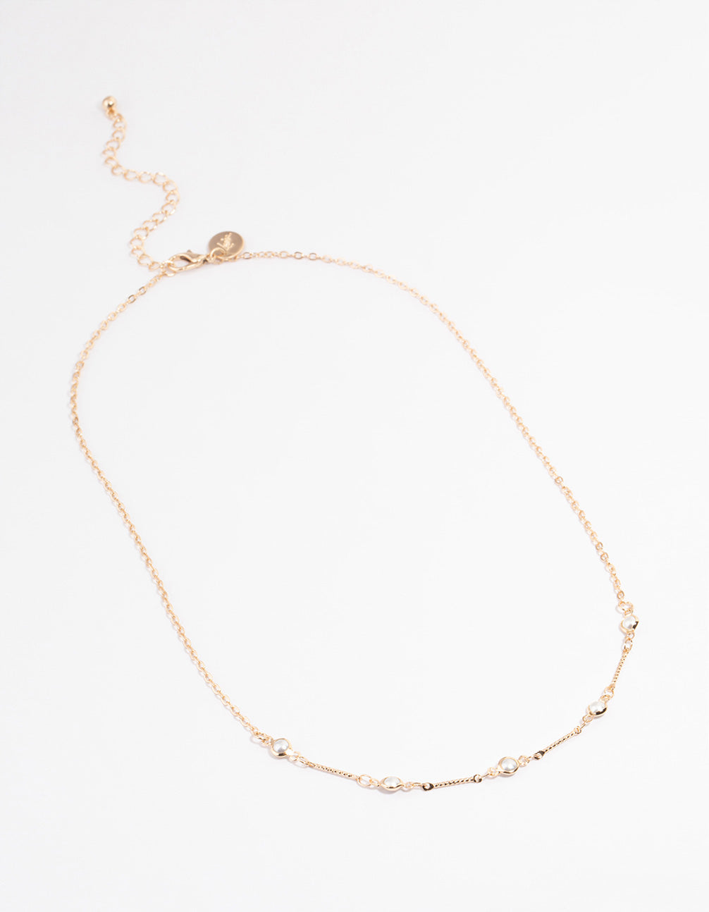 Gold Encased Pearl Station Necklace Gold Encased Pearl Station Necklace