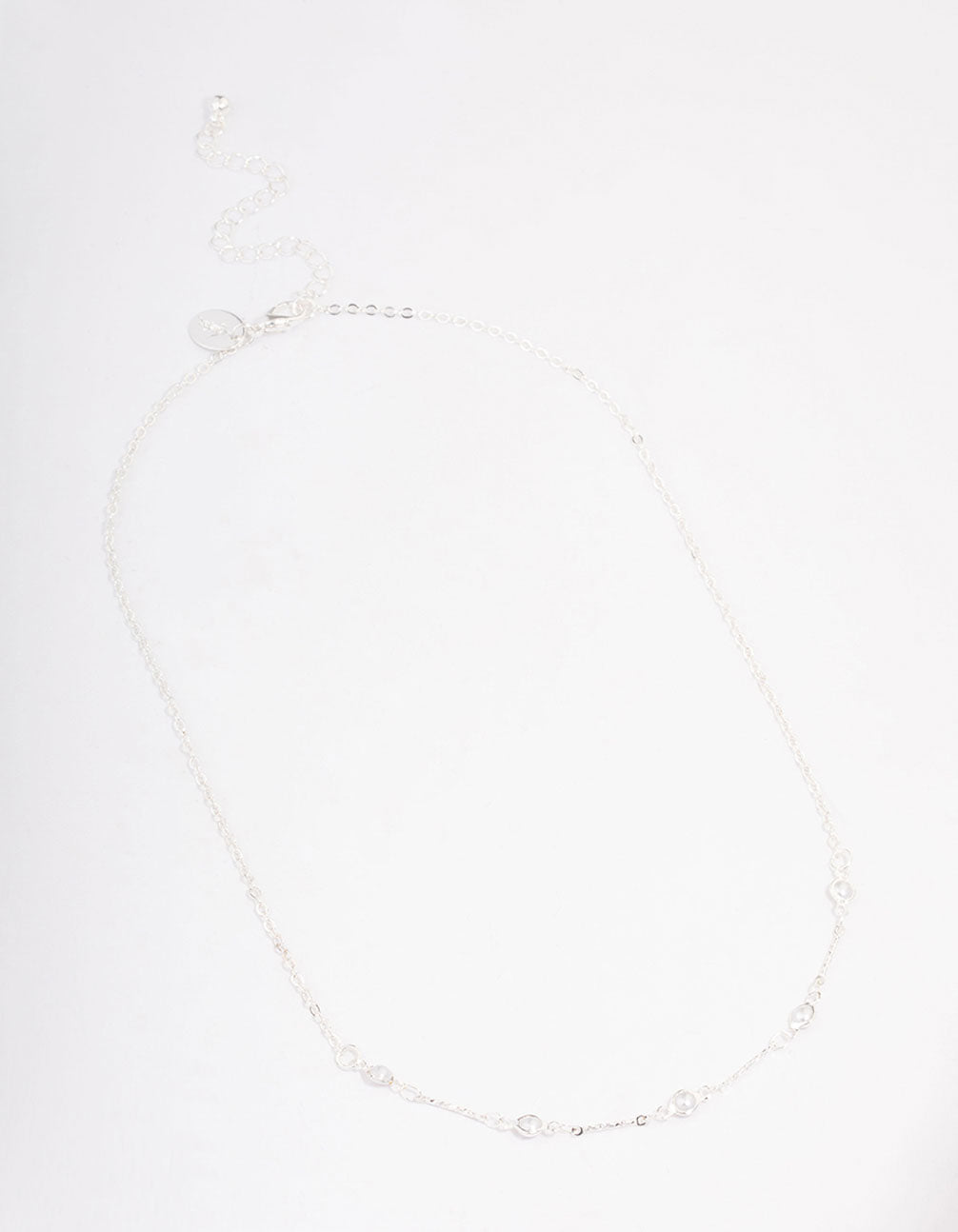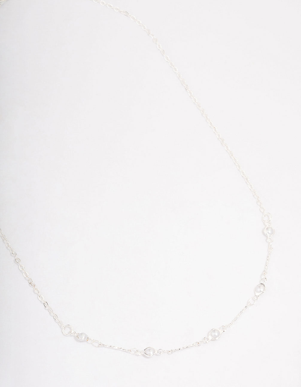 Silver Encased Pearl Station Short Necklace
