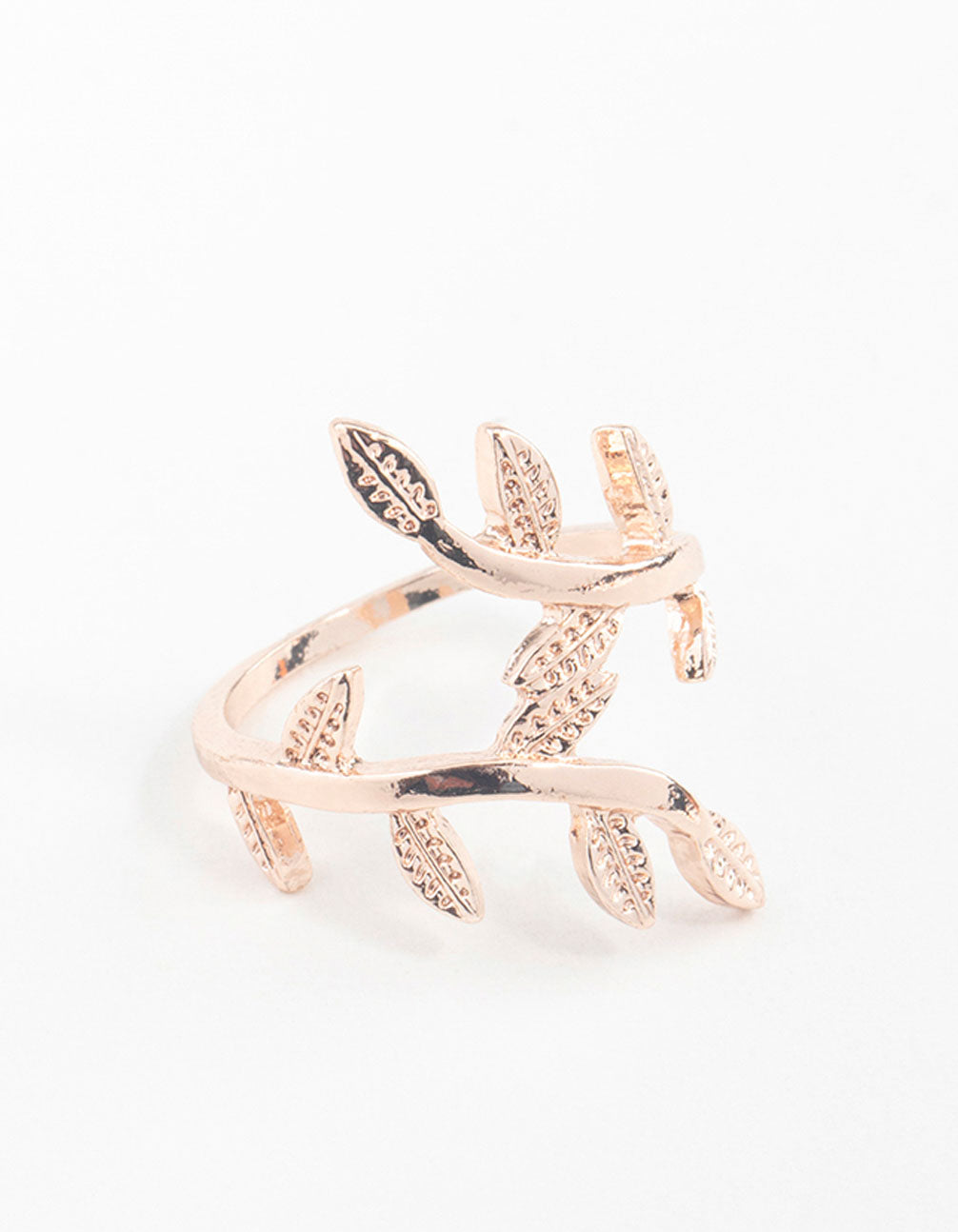 Elevate your look with this rose gold-toned leaf double band ring.