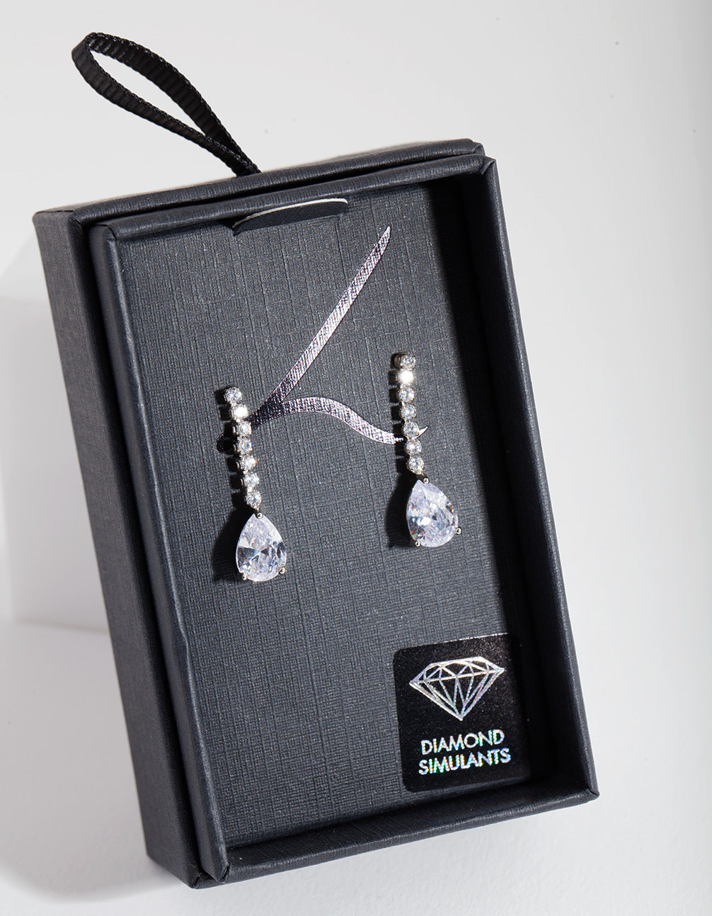Silver Cubic Zirconia Pear Cup Chain Drop Earrings