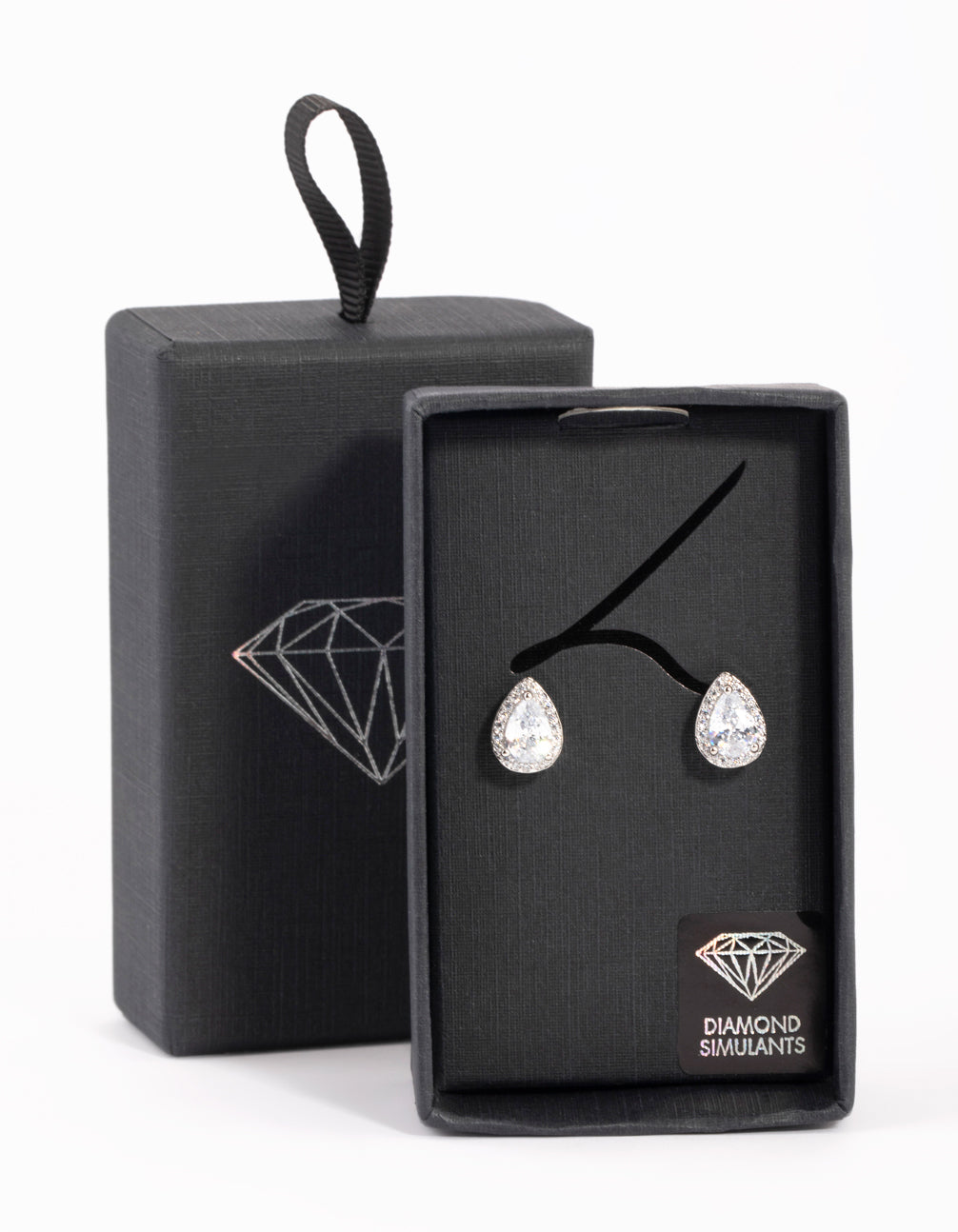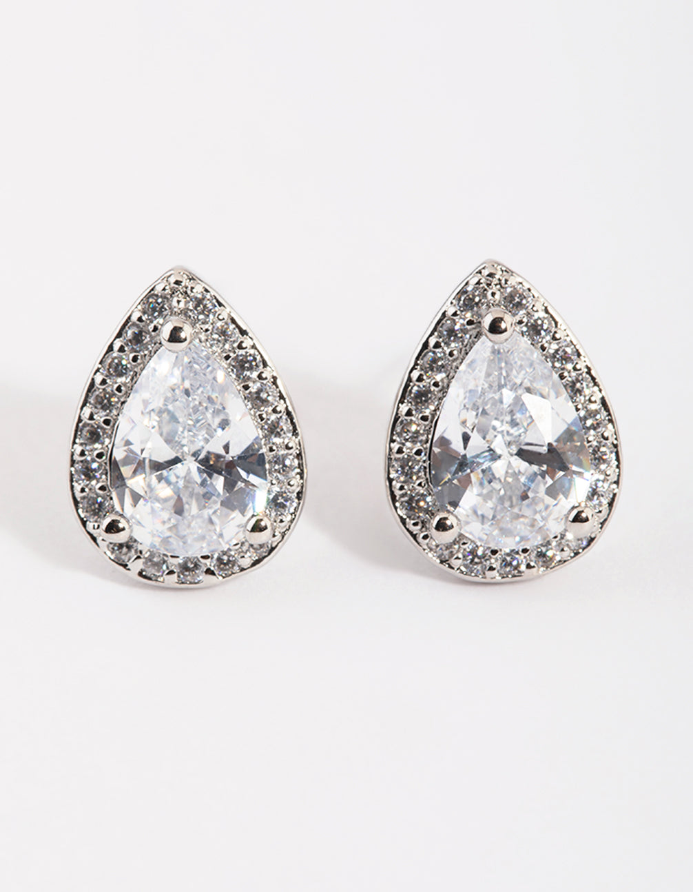 Silver Cubic Zirconia Pear Halo Stud Earrings