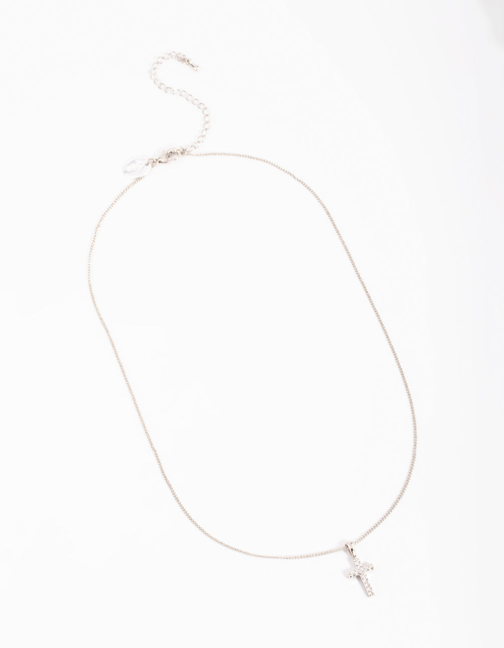 You need a new necklace! This adorable pendant piece is perfect for day-to-day wear. It features a dainty cross charm on a fine silver-toned chain.