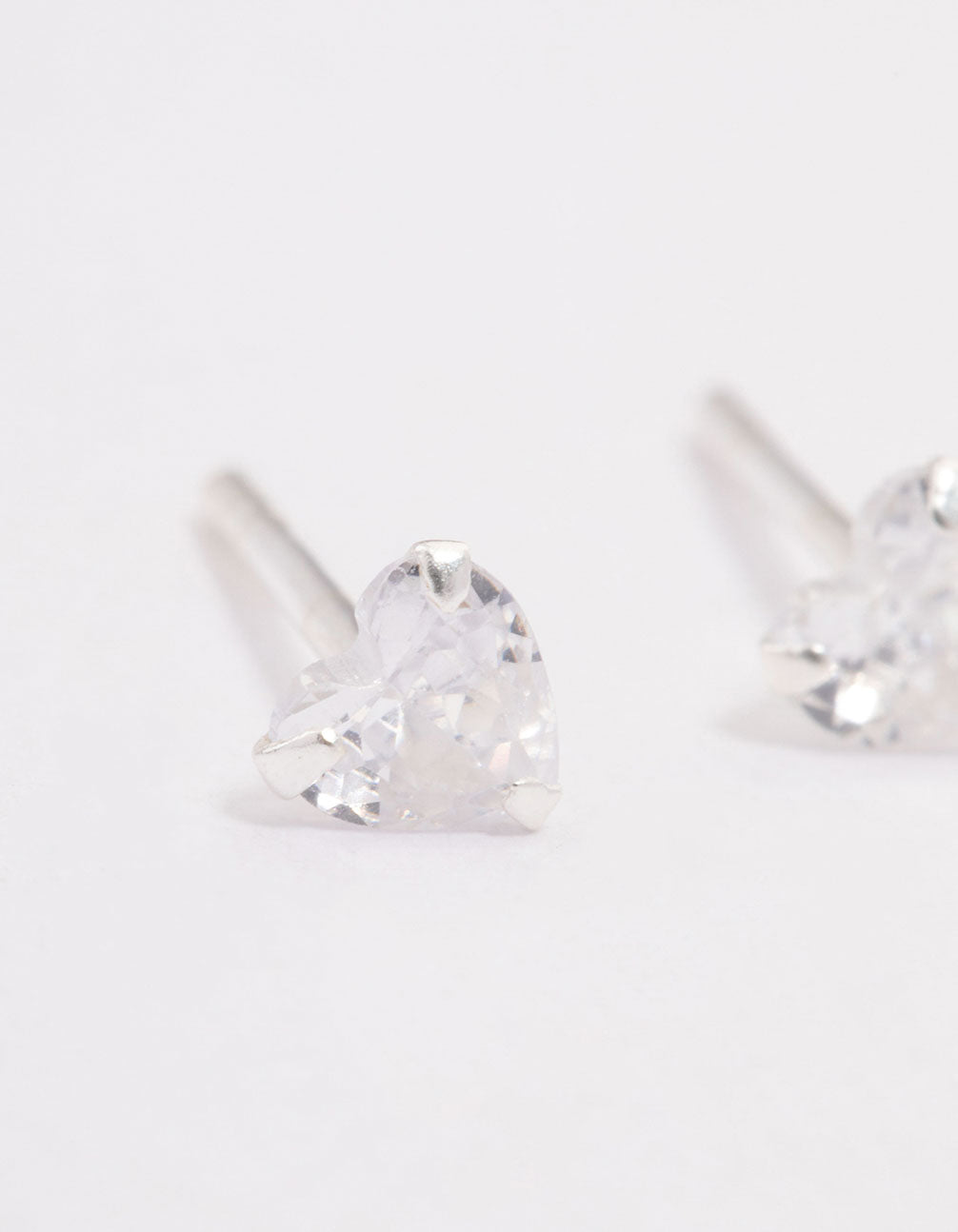 Sterling Silver Cubic Zirconia Heart Stud Earrings 4mm