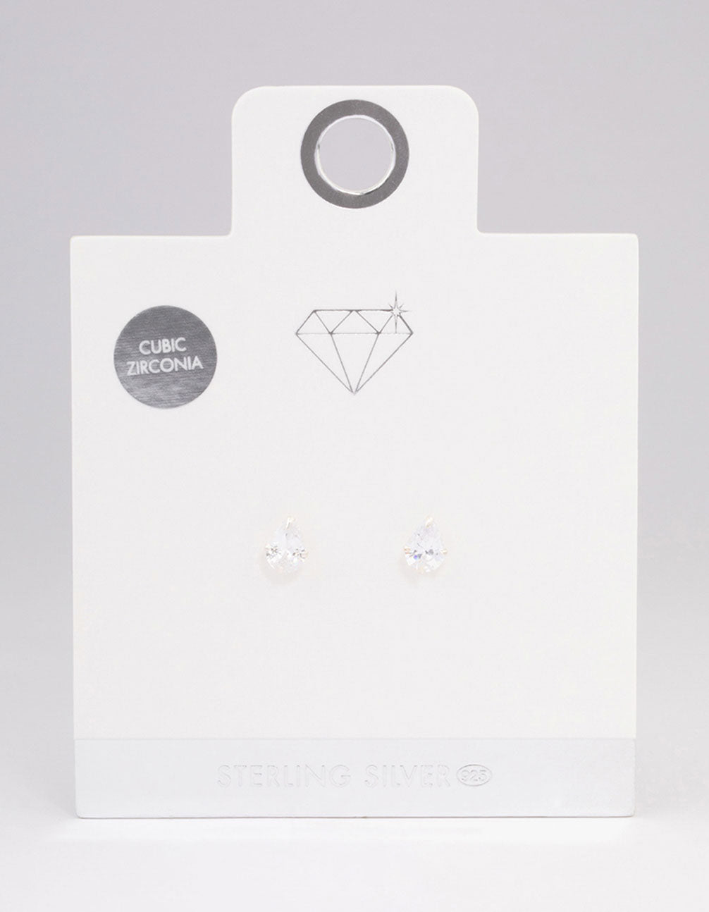 • This set of staple sterling silver stud earrings features cubic zirconia crystals in a timeless pear shape for a classic look.