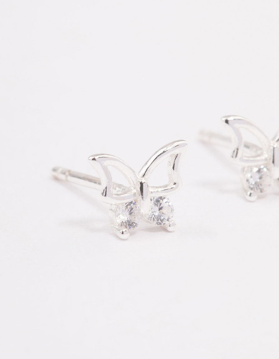 - This set of staple sterling silver stud earrings features delicate diamantes, perfect for adding flair to your everyday stack.