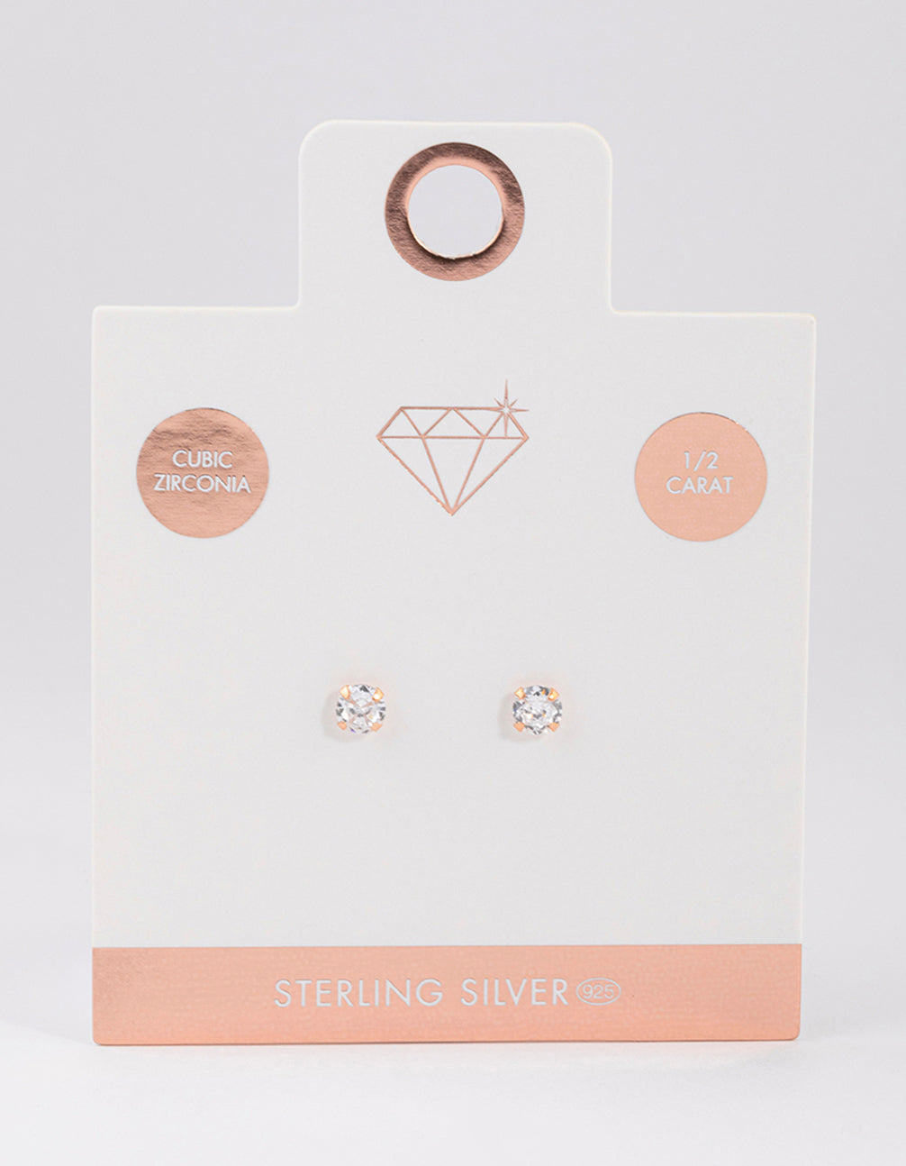 Rose Gold Plated Sterling Silver Cubic Zirconia Stud Earrings