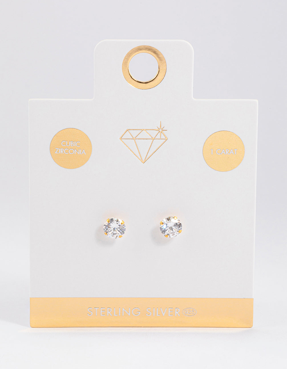 - This set of studs feature a gorgeous, gold plated setting with cubic zirconia crystals for a touch of glamour.