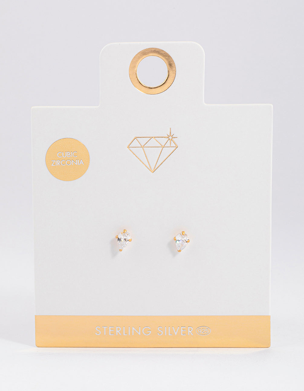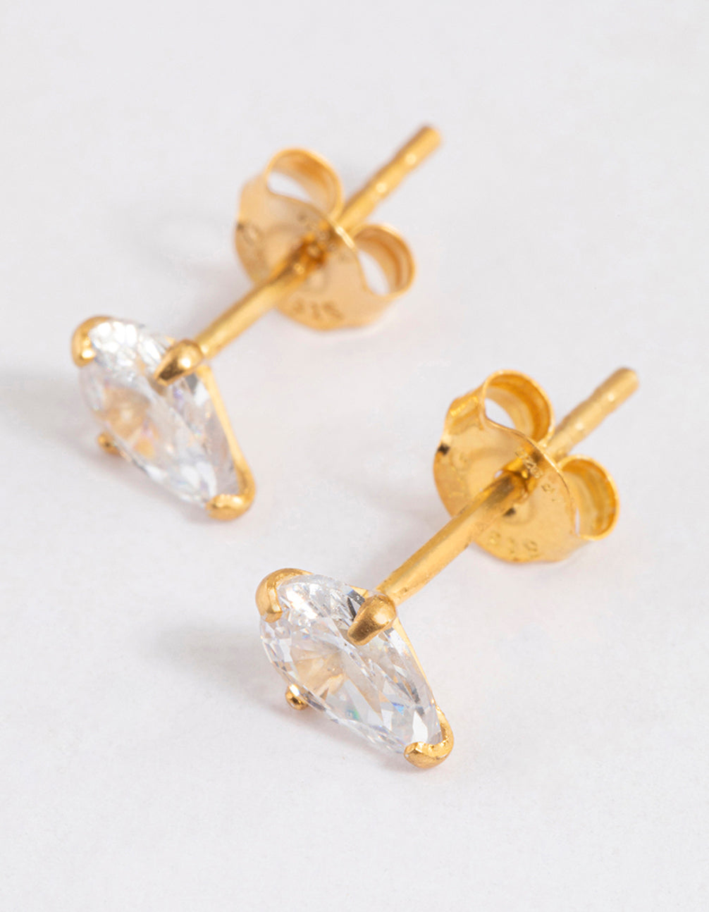 Gold Plated Sterling Silver Pear Cubic Zirconia Stud Earrings