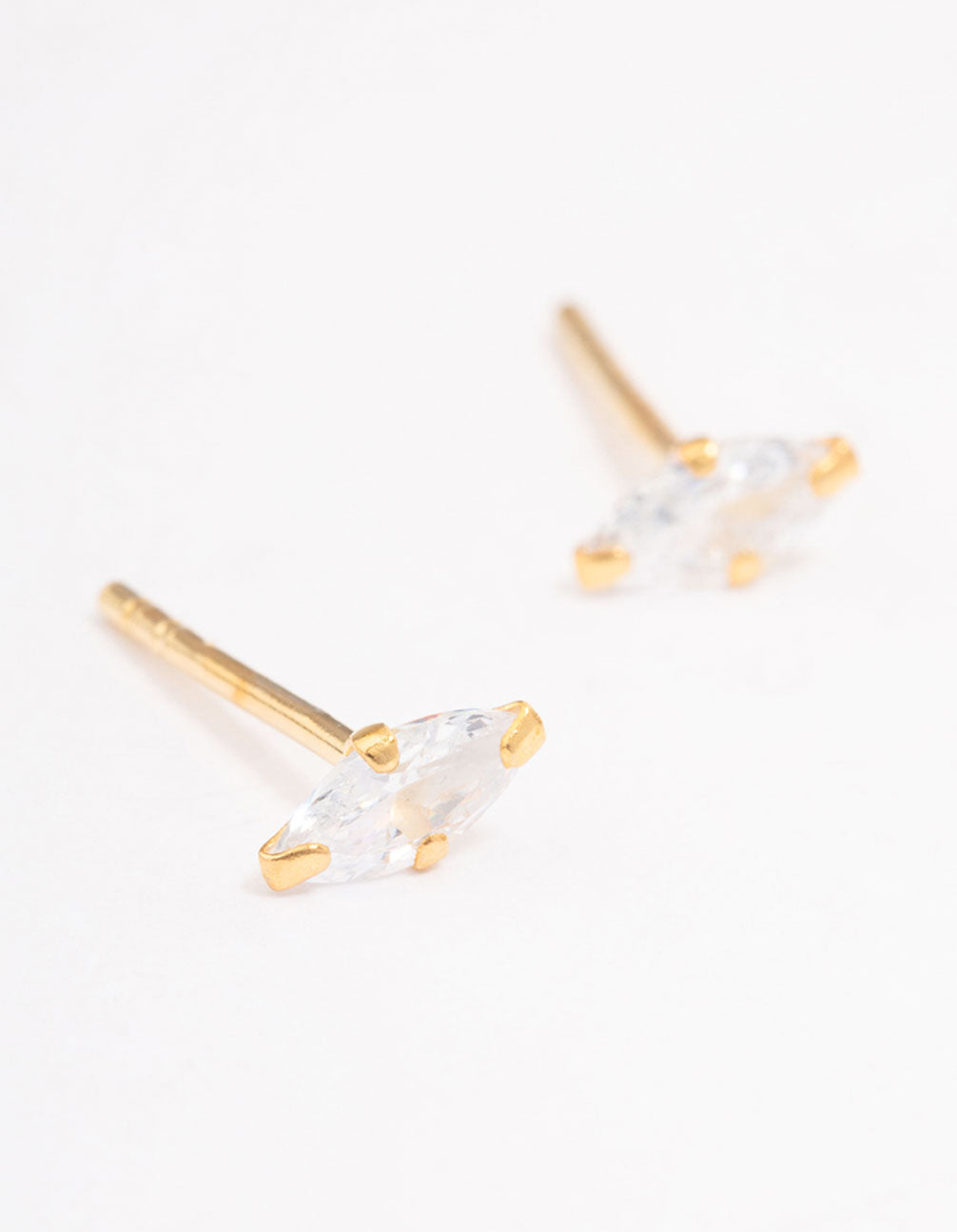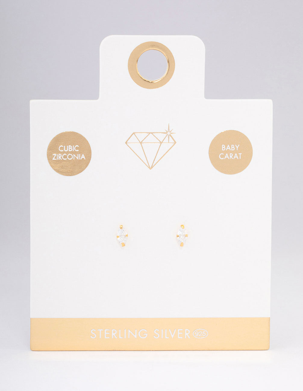 Gold Plated Sterling Silver Baby Marquise Stud Earrings