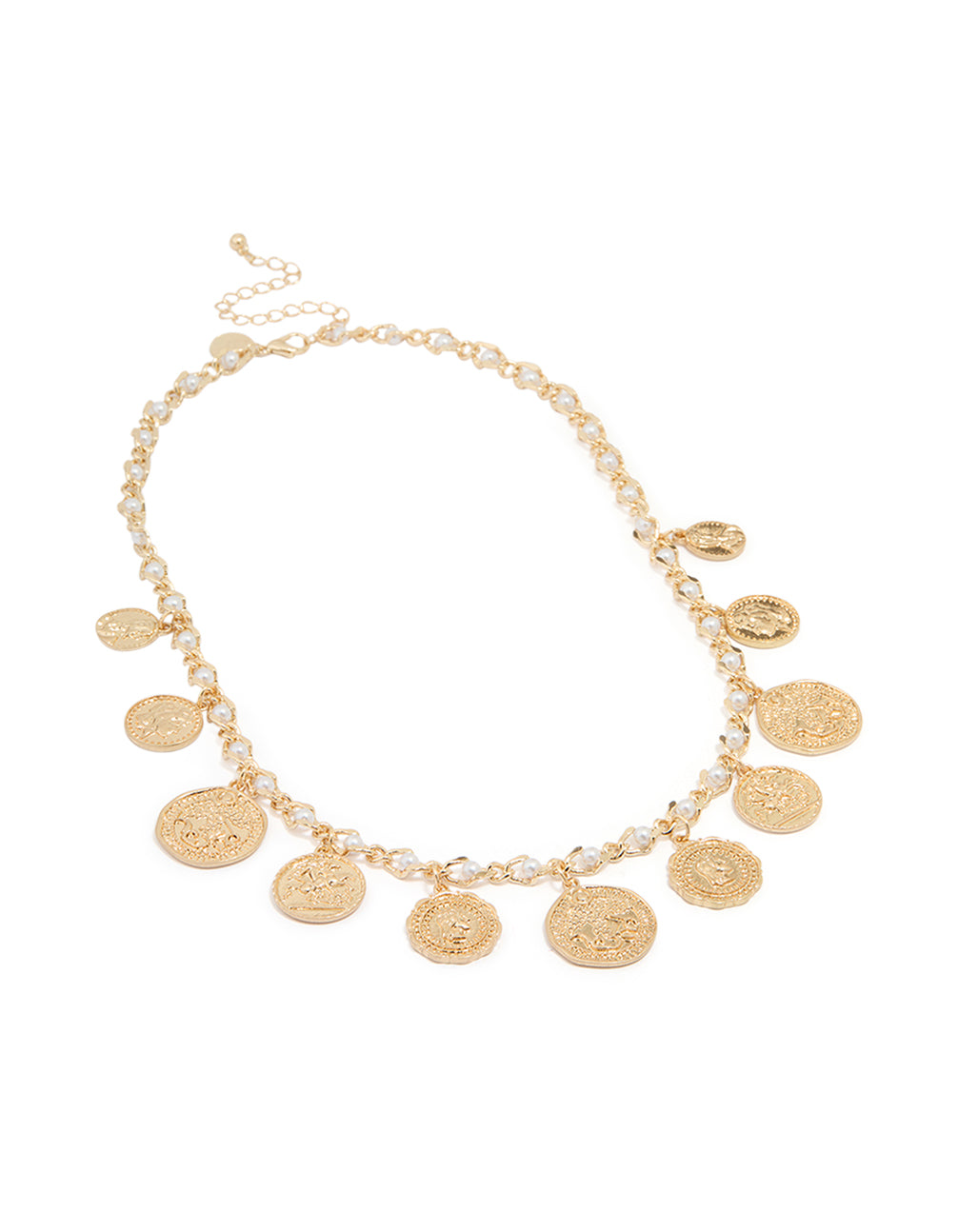 • Antique Gold Pearl Coin Charm Necklace - link has visual effect only