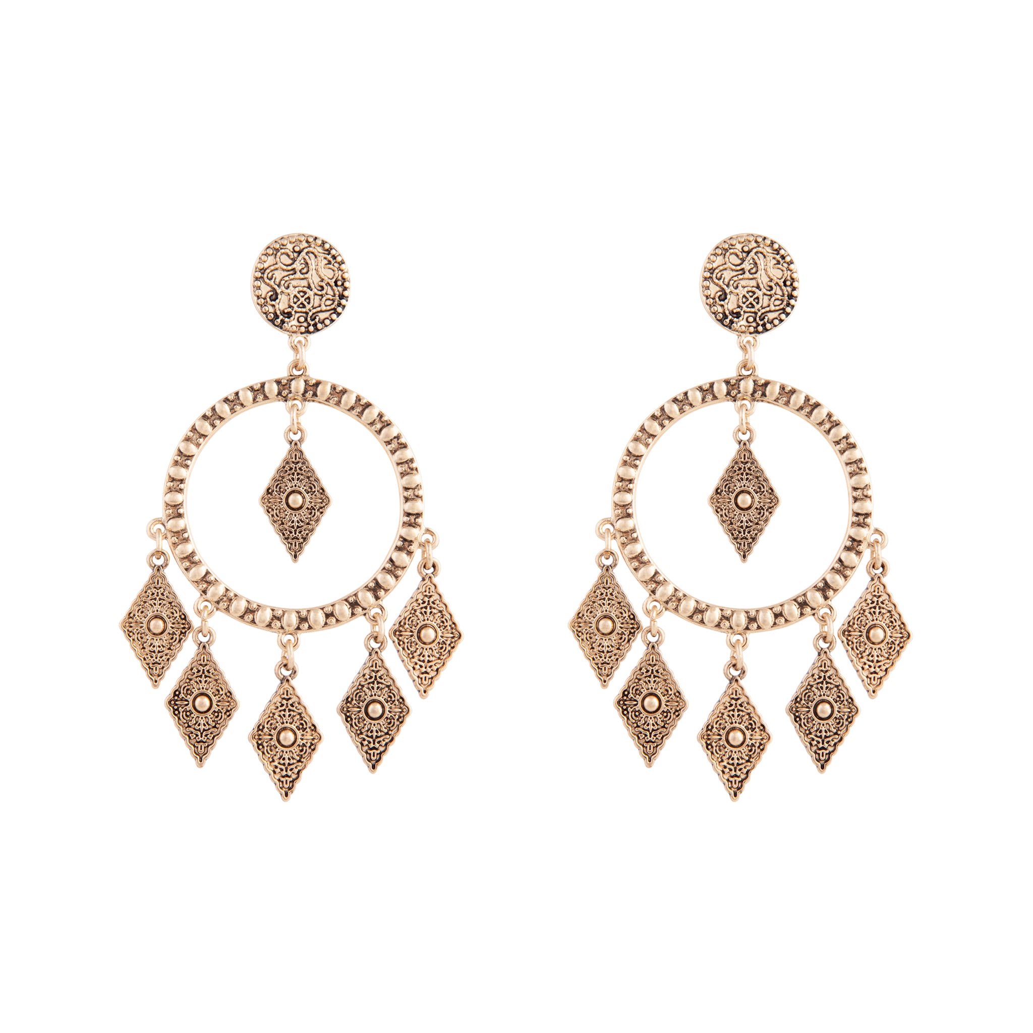 Antique Gold Textured Diamante Circle Earrings