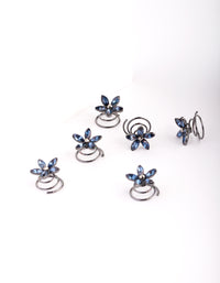 Whether you are a bride, a bridesmaid or just wanting to look glamorous for a party, these styles are the perfect way to add some sparkle to your looks! This set includes six hair screws that are adorned with sapphire-blue flowers.