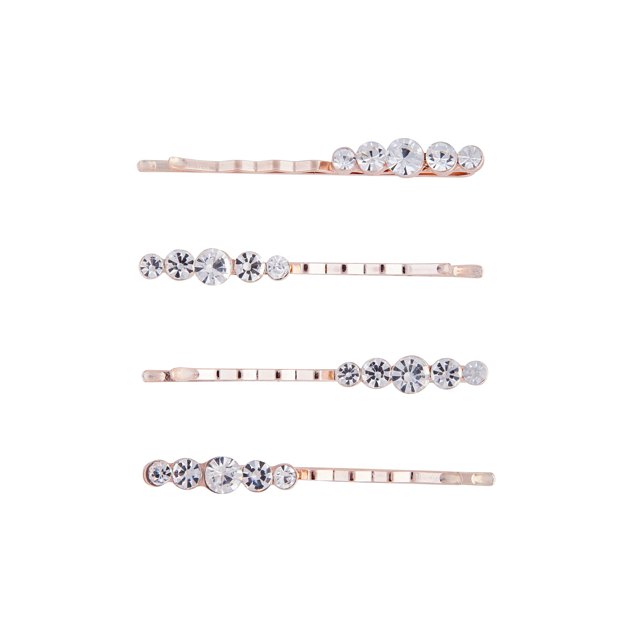 A pack of 4 rose-gold-toned hair pins with circular diamantes.åÊ