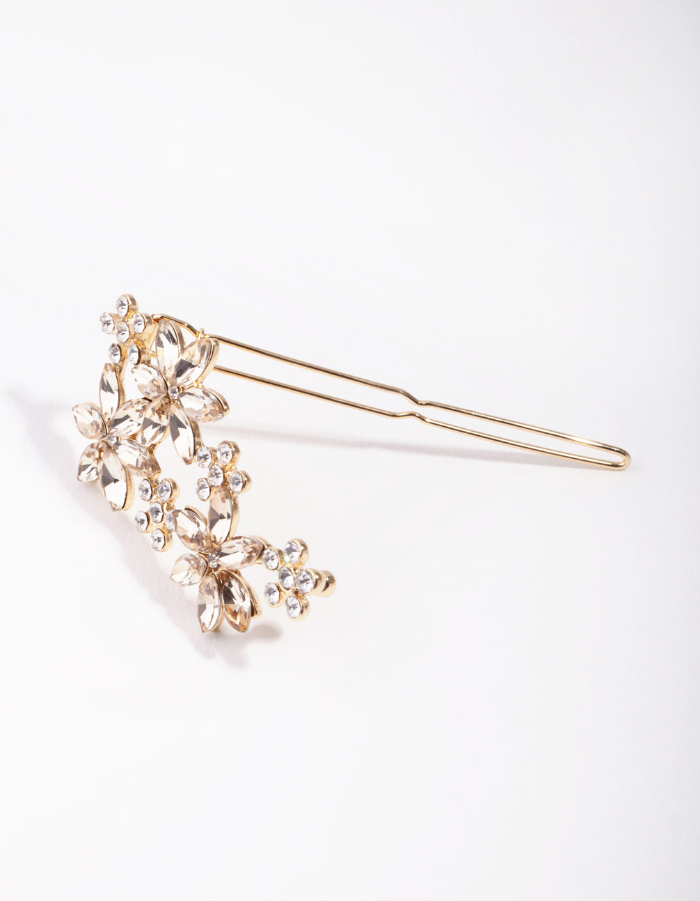 Add a touch of whimsy to your outfits by experimenting with hair accessories. This gorgeous gold-toned hair comb features flowers studded with diamantes for extra sparkle.