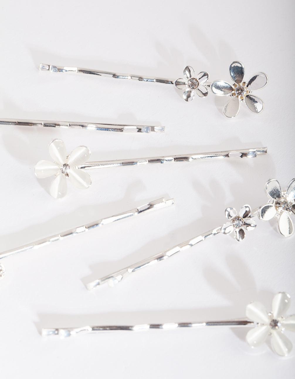 Flower hair accessories are perfect for those wanting to create a playful occasion look. This pack comes with multiple silver-toned styles with a cats eye stone design. Draw attention to your luscious locks with this hair clip pack.
