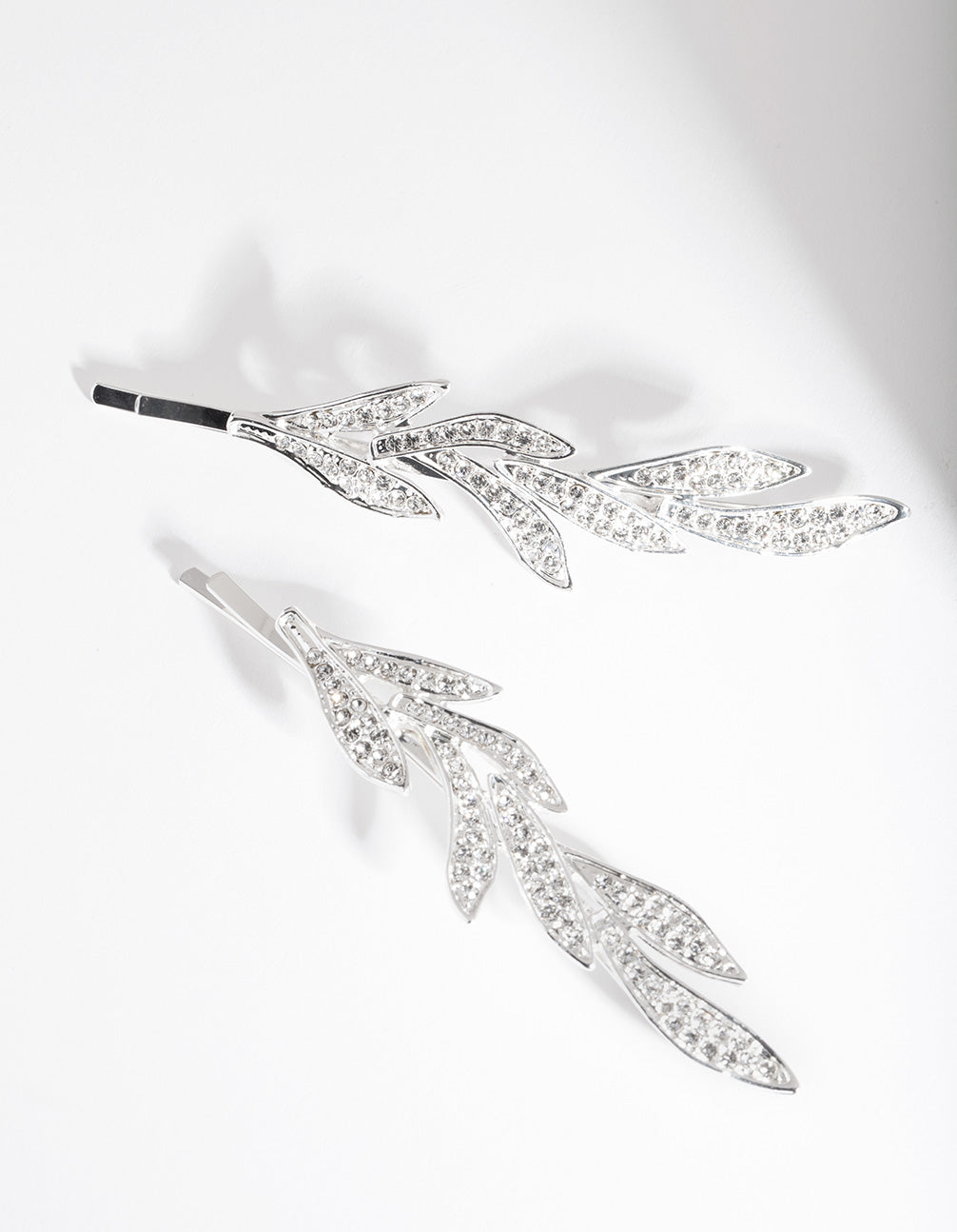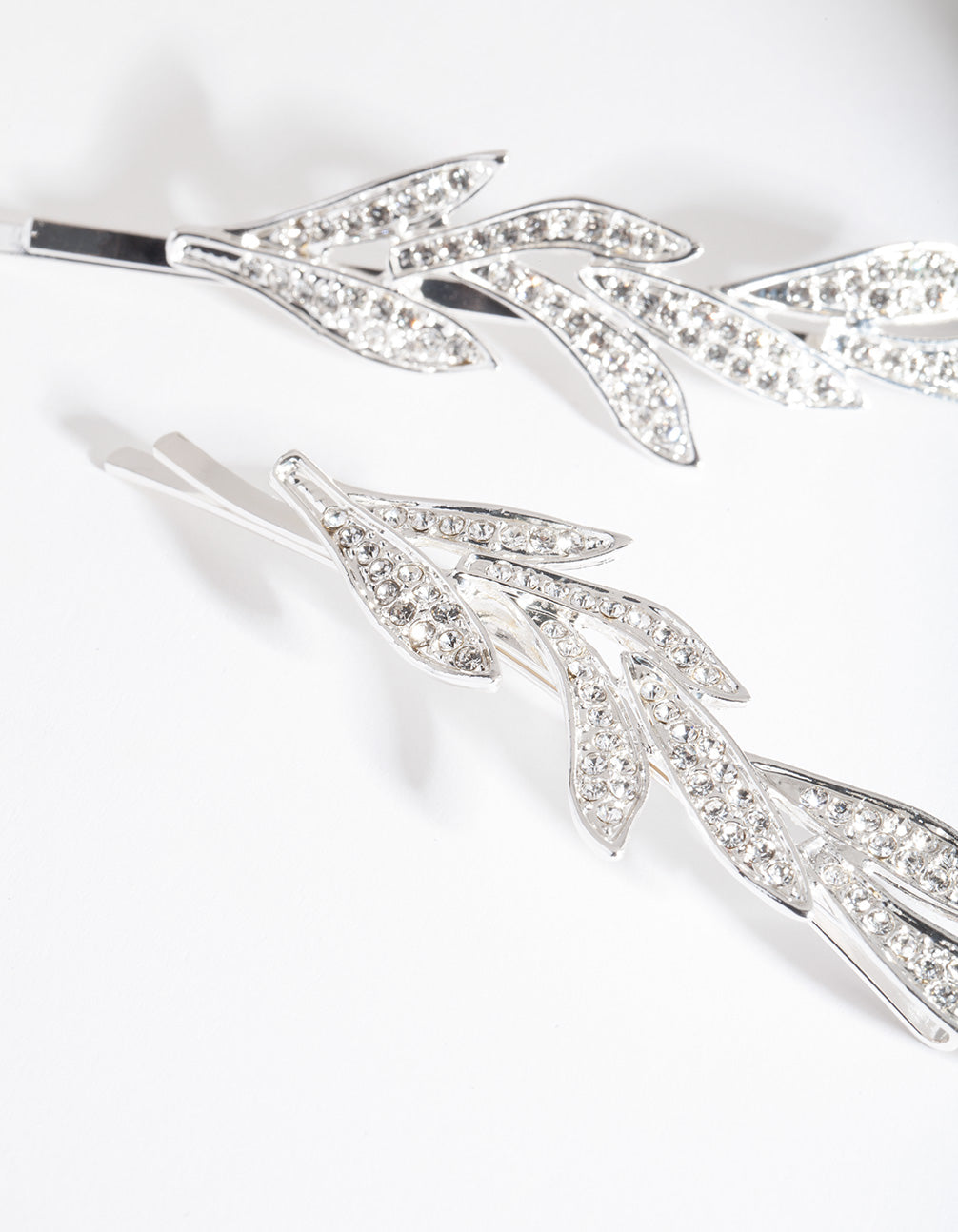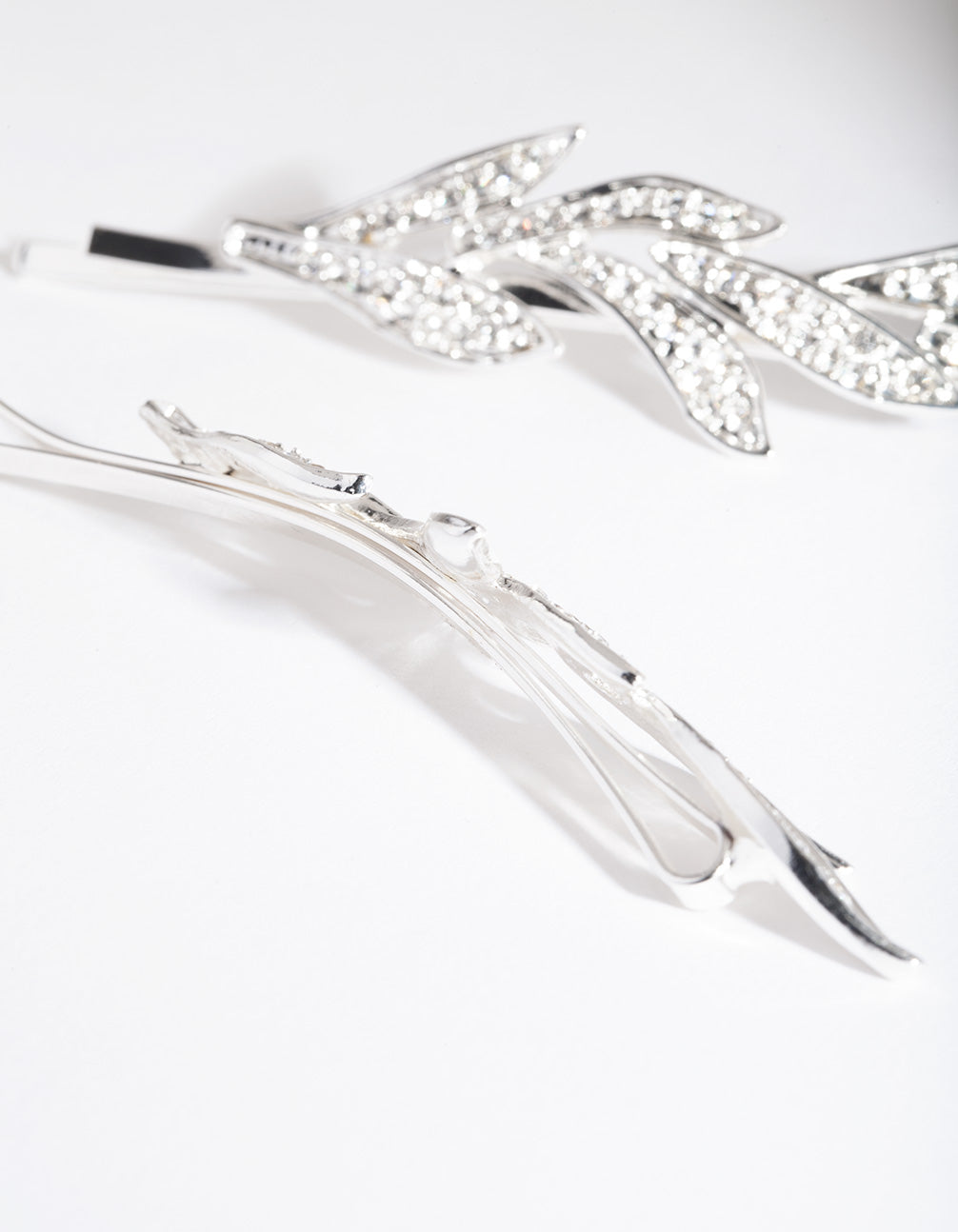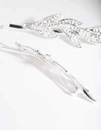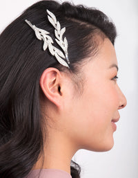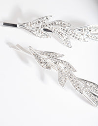 Silver Double Leaf Diamante Clip Pack