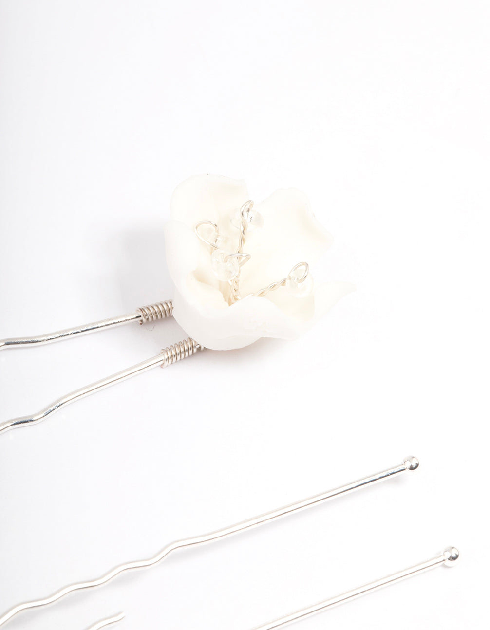 White Large Flower Hair Pin Pack