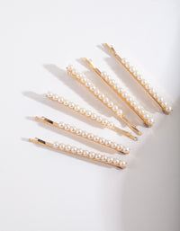 Gold Pearl Hair Pin 6-Pack