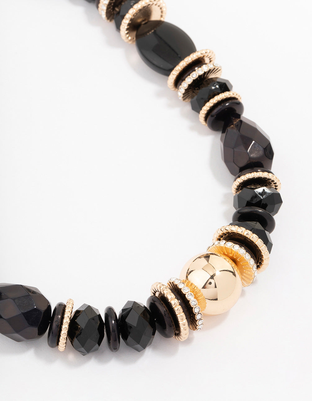 Create impact to your stack with this beaded, black statement necklace. This necklace features a chunky silhouette, adorned with black and gold beads.