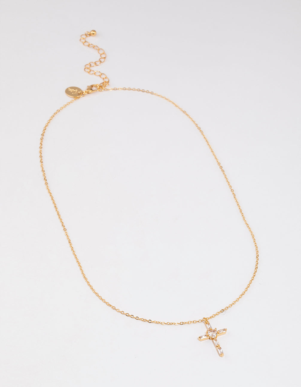 - Pair this Gold Plated Cubic Zirconia Baguette Cross Necklace with a pair of timeless huggie hoops for a signature look.