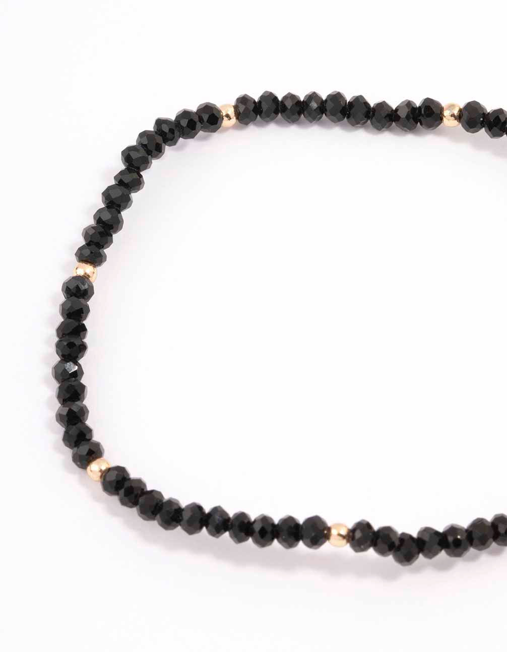 Black Beaded Simple Toggle Heart Charm Bracelet