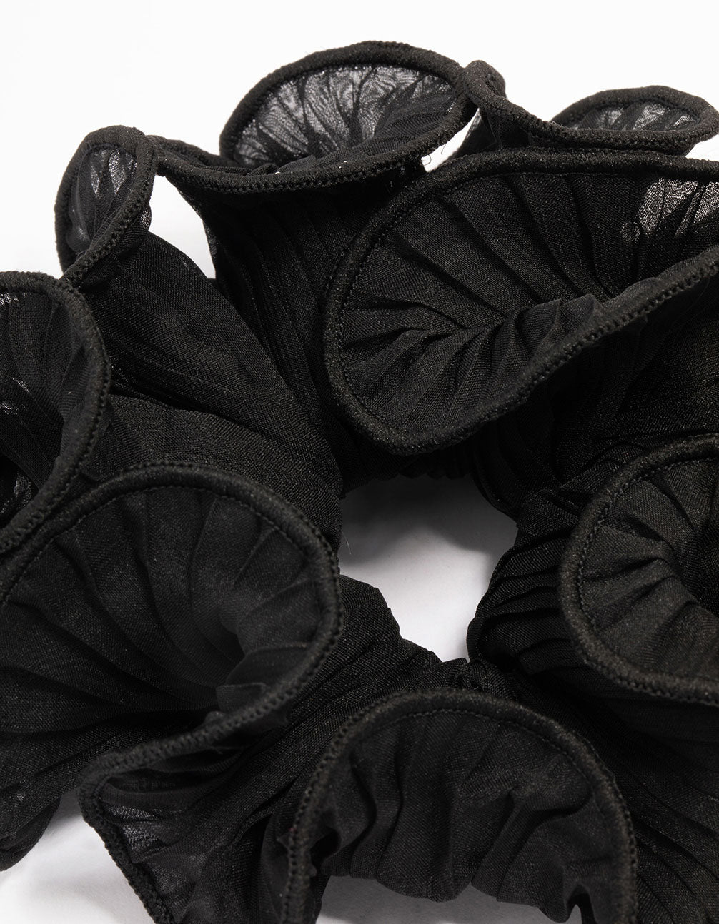 Add a touch of effortless glamour to your hair with this Black Crinkle Fabric Statement Scrunchie. Perfectly oversized with a textured crinkle design, this stylish scrunchie is both stylish and practical. Whether you're rocking a messy bun for a casual day out or a sleek ponytail for dinner with friends, this hair accessory elevates any look. Ideal for everyday wear or special occasions, pair it with anything from a cosy jumper to a chic dress. A must-have for anyone looking to make a statement with their hair accessories!