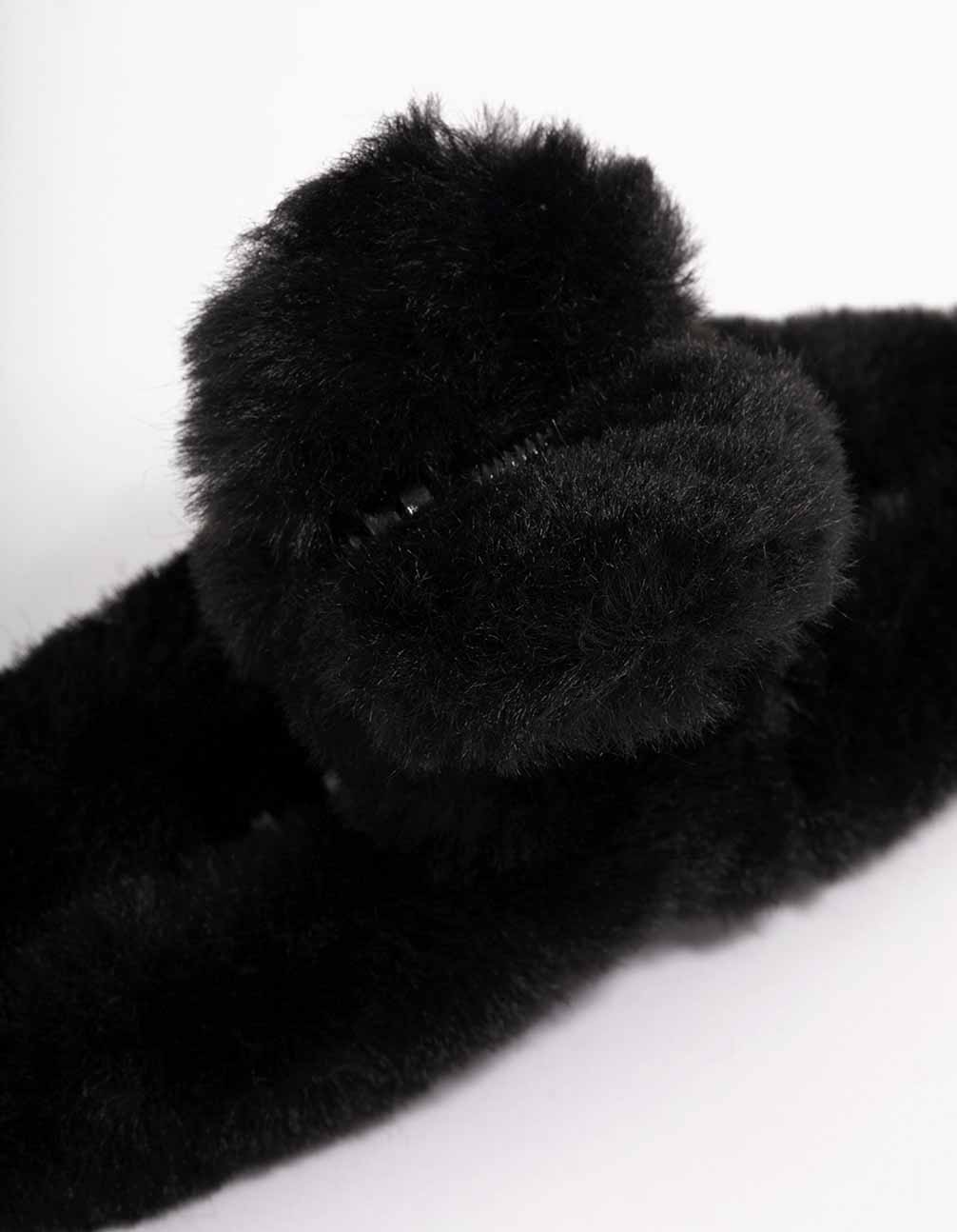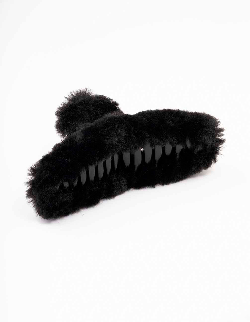 This '90s-inspired hair claw clip features a black, fluffy texture. Perfect for adding a playful touch to your hairstyle!