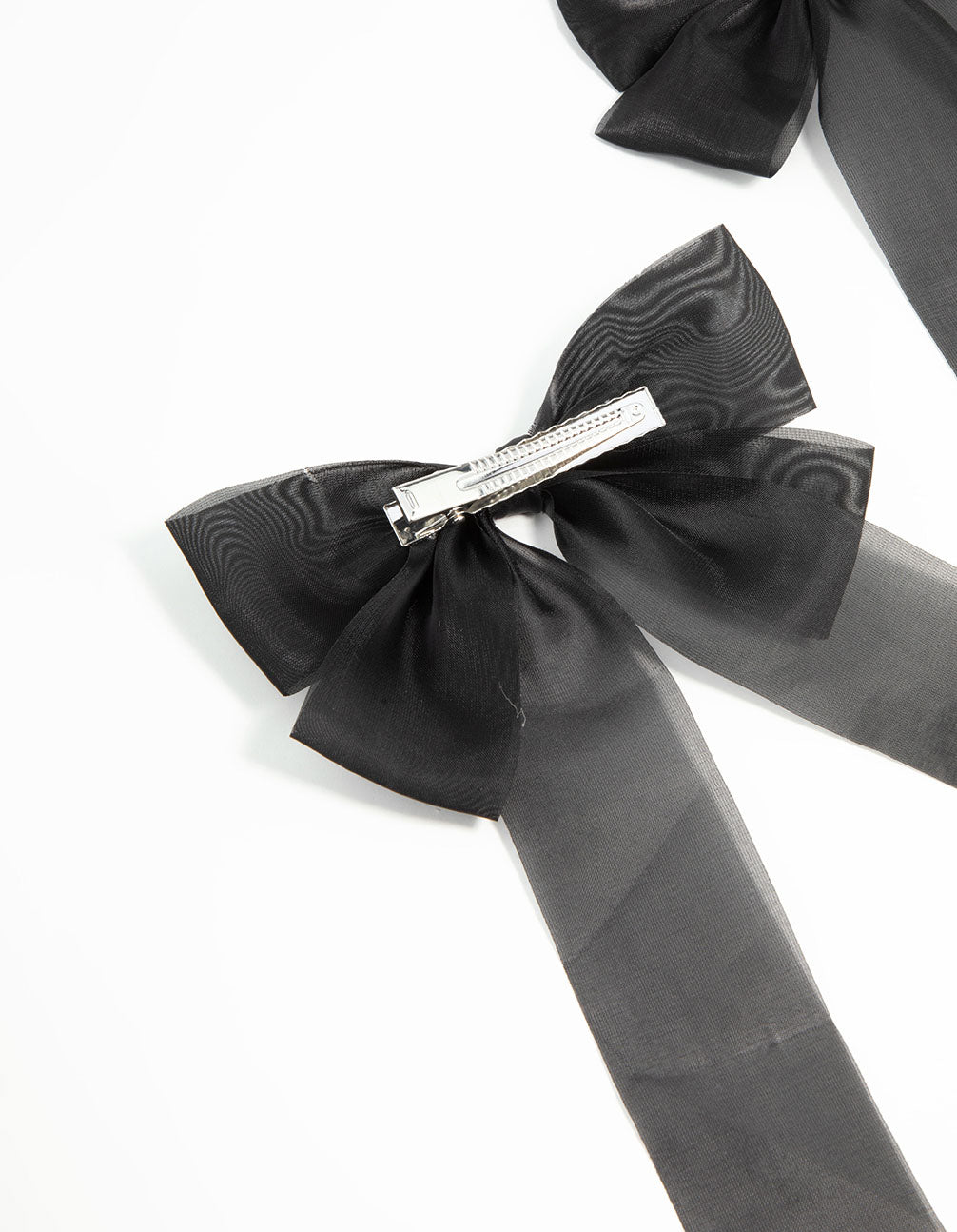 Upgrade your hair game with this chic bow pack! This pack features two stunning black organza fabric bows, perfect for adding a stylish touch to any outfit.