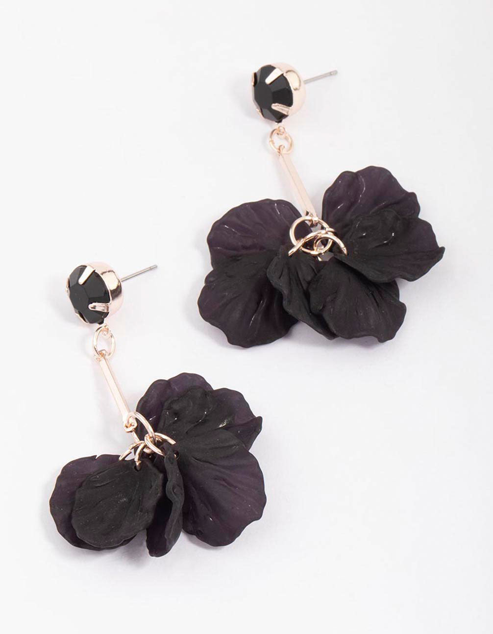 These stunning petal drop earrings feature a simple, rose gold setting adorned with decorative black petals. Perfect for elevating any outfit!