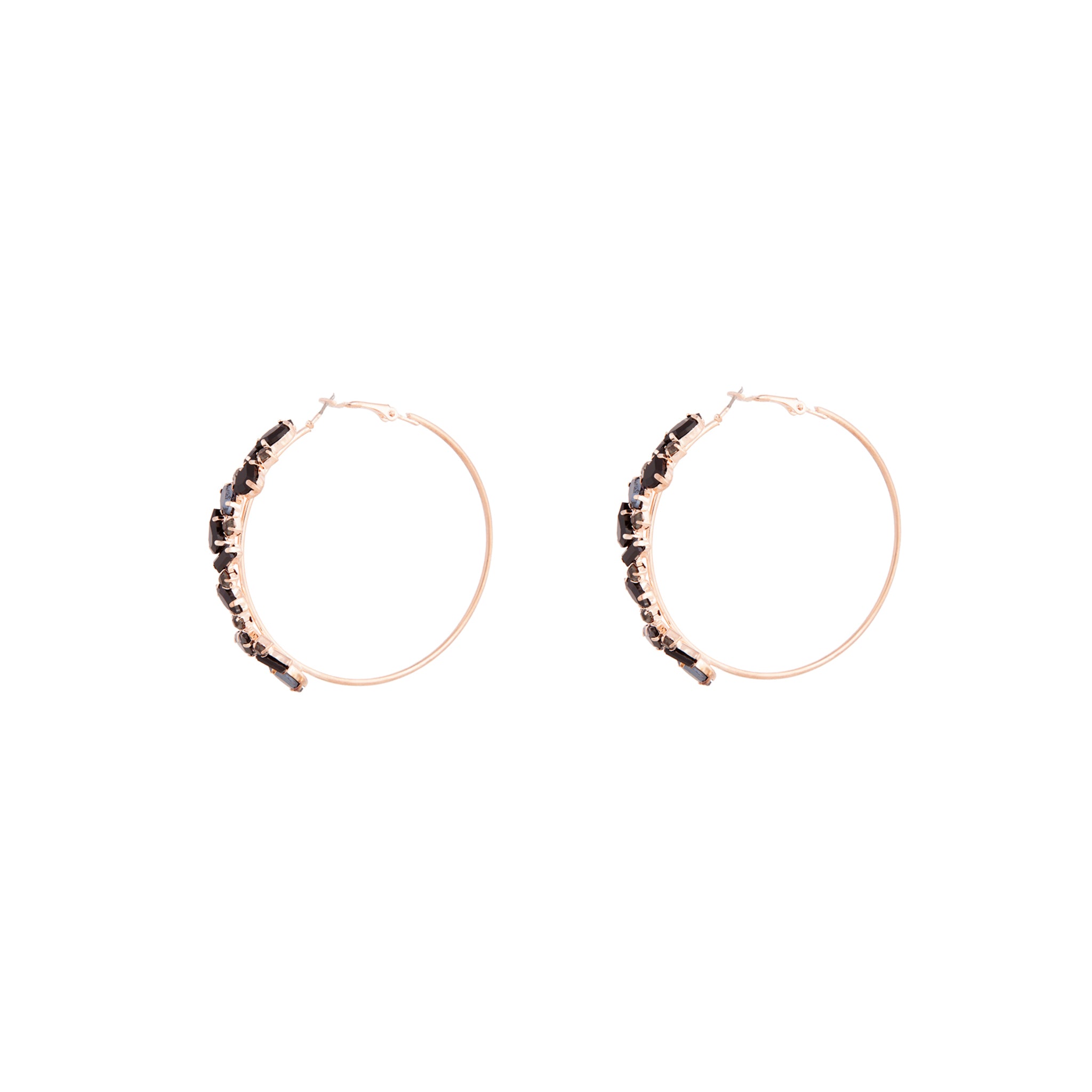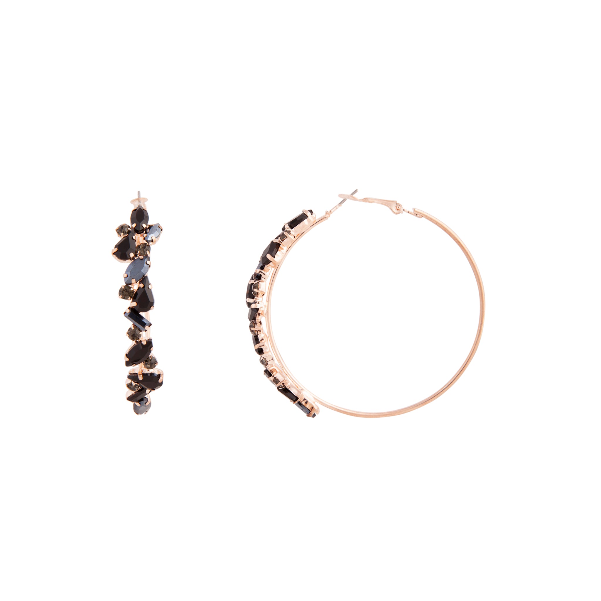 Find some magic in the everlasting magic of crystals and stones. These rose-gold-toned hoop earrings are lined with black stones for an elegant finish. Match with other rose-gold and semi-precious elements for a timeless aesthetic.