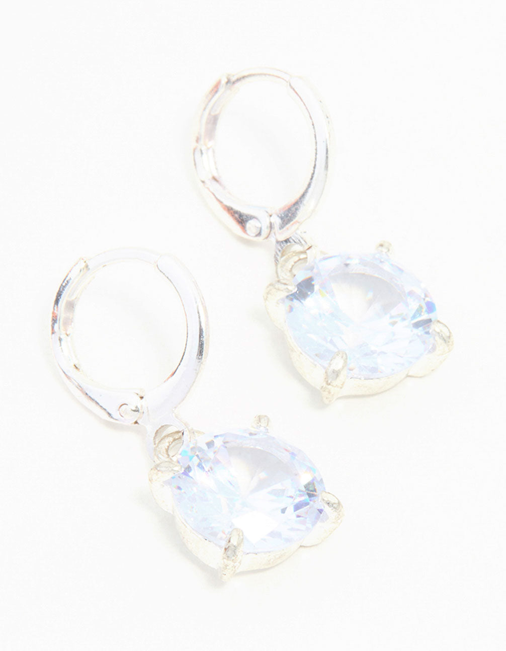 Blue Bezel Diamante Clicker Drop Silver Earrings