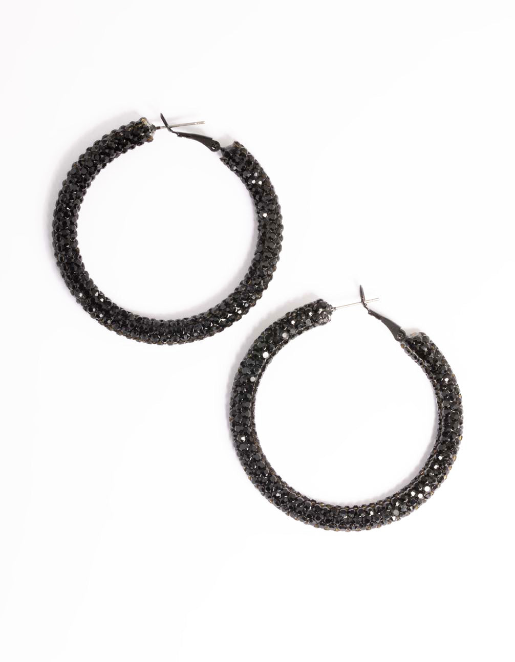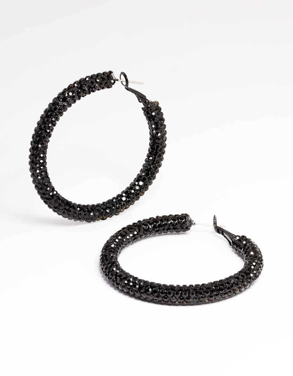 Jet Black Coated 40mm Crystal Hoop Earrings