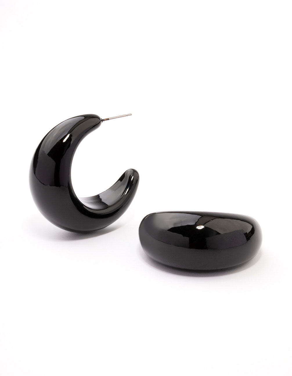 - These simple hoop earrings feature a black finish and thick, puffy design for added drama.