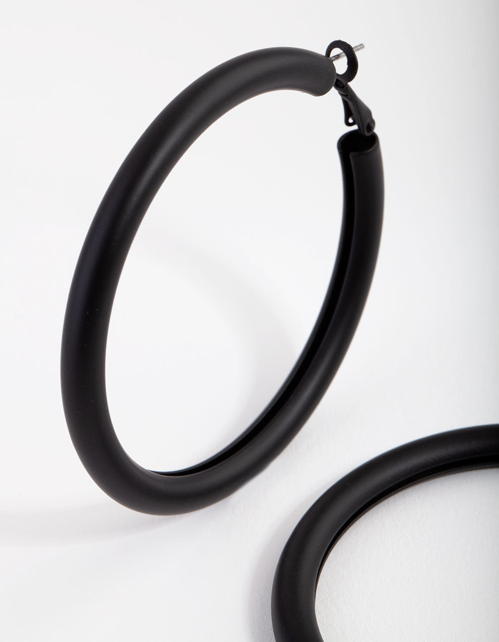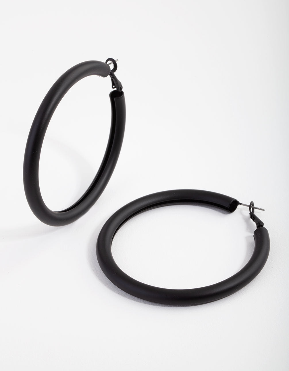 Black accessories are a great alternative to more common metal designs. Show your individuality with these matte monochrome hoop earrings.