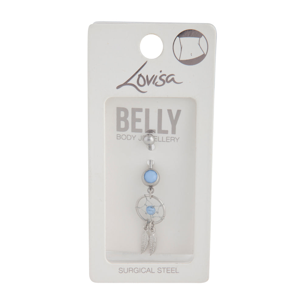 Surgical Steel Blue Diamante Dreamcatcher Belly Bar