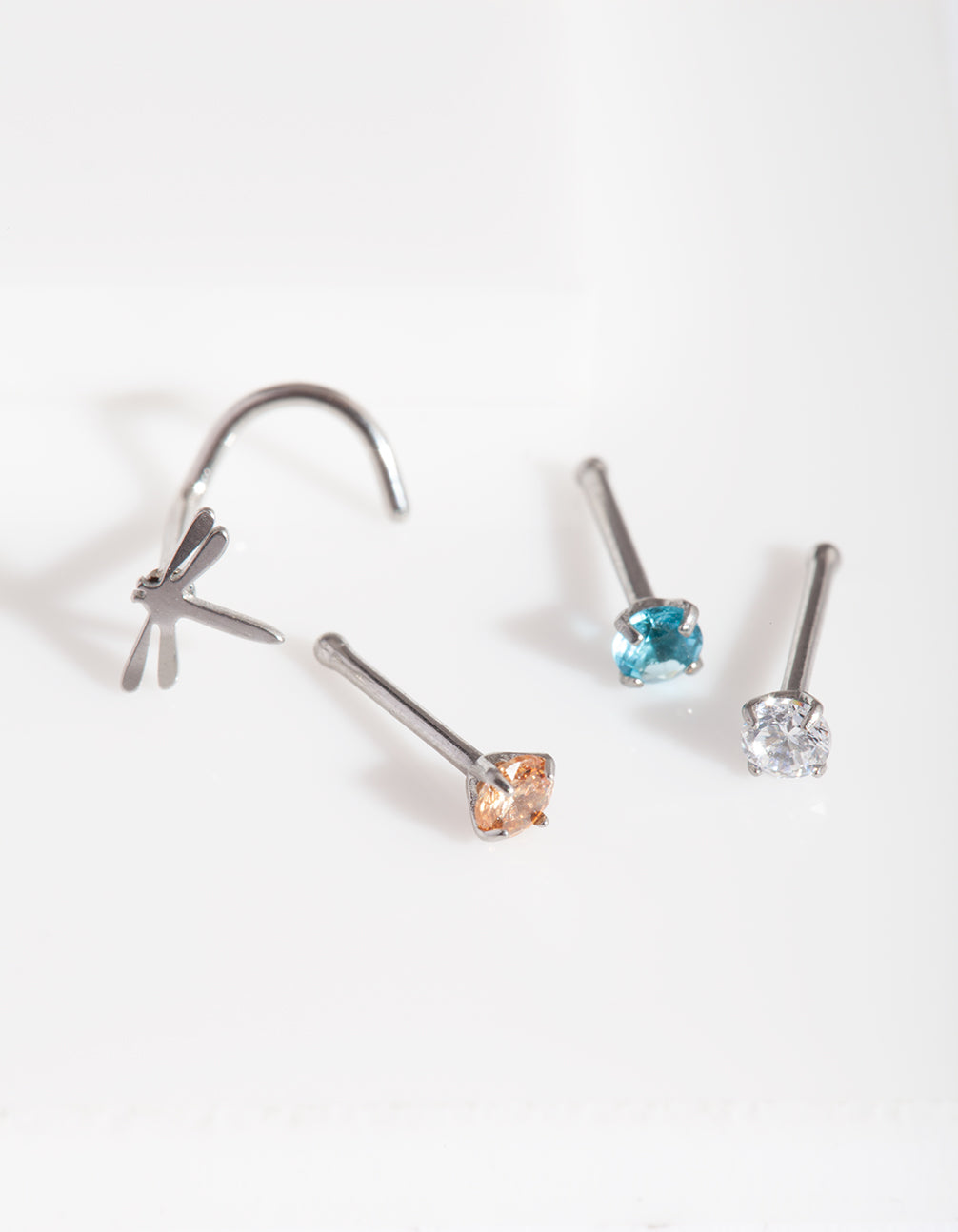 Surgical Steel Dragonfly Diamante Nose 4-Pack