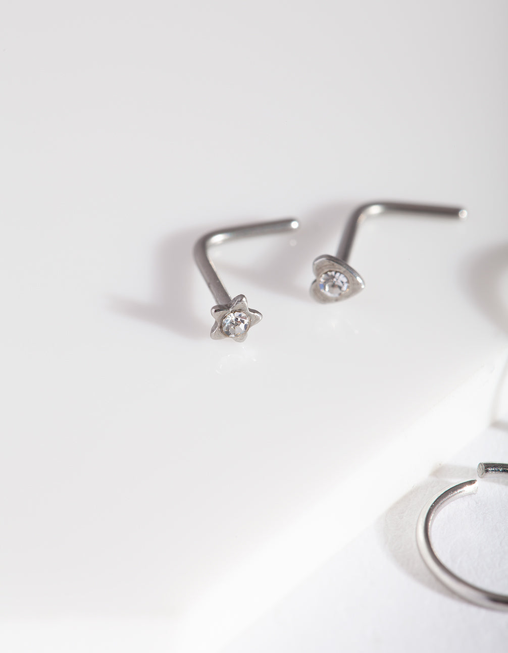 Lovisa body jewellery is made from surgical steel, making it the perfect option for everyday wear. This collection has been made with piercings in mind and features both trend-led and classic styles that you can swap out to suit any occasion. This nose ring pack featuressilver-toned nose rings and studs with diamante heart and star designs. Mix and match your nose rings to coordinate with Lovisa accessories for a fashion-forward look!