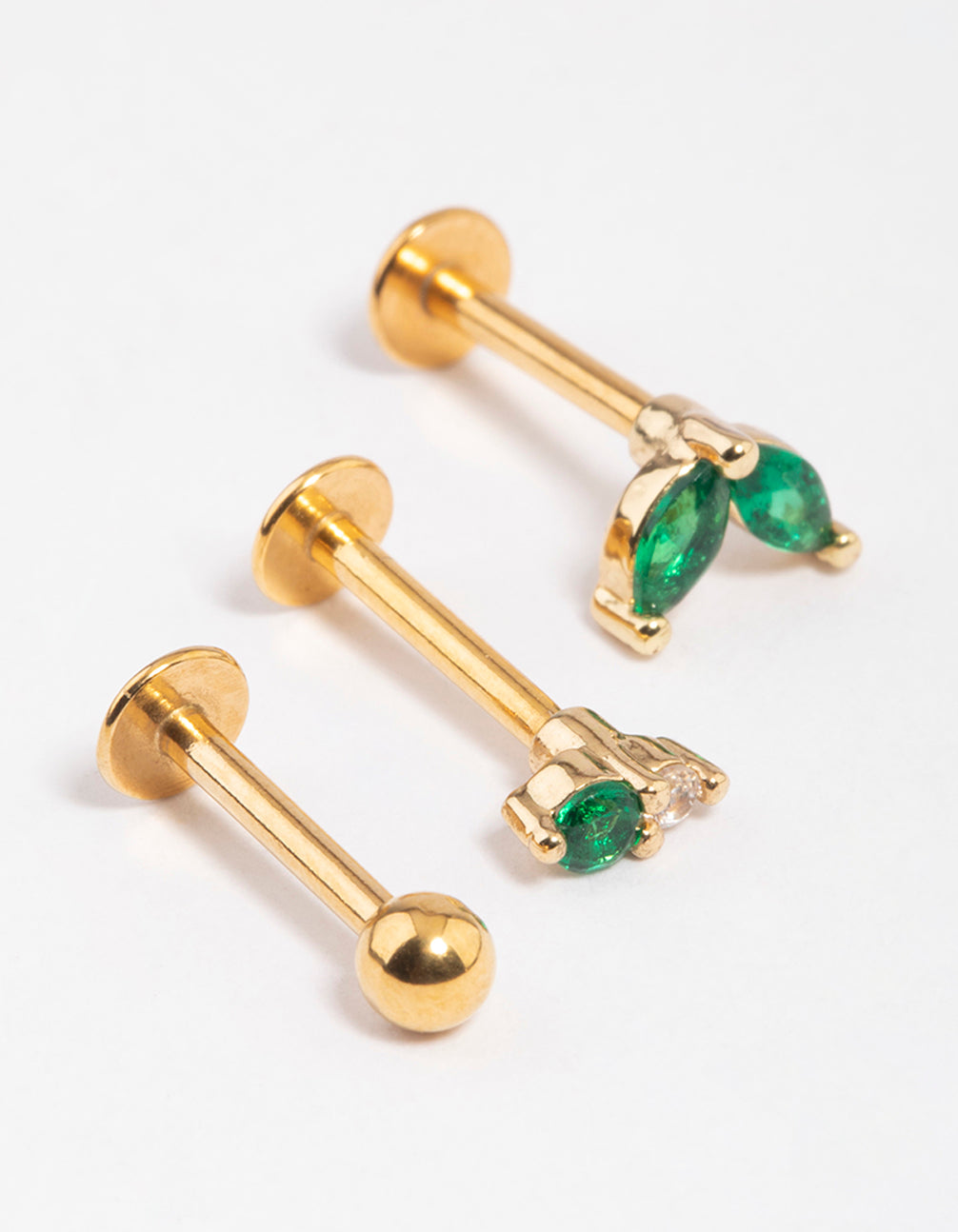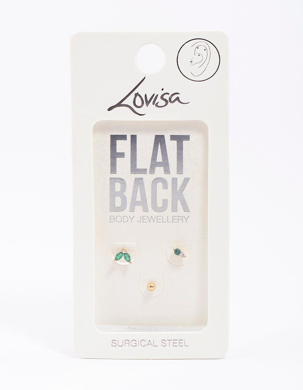 Explore our wide range of durable and on-trend body jewellery crafted with genuine surgical steel. This gold plated surgical steel flatback pack is a tarnish-resistant and gentle piercing option, perfect for everyday styling.