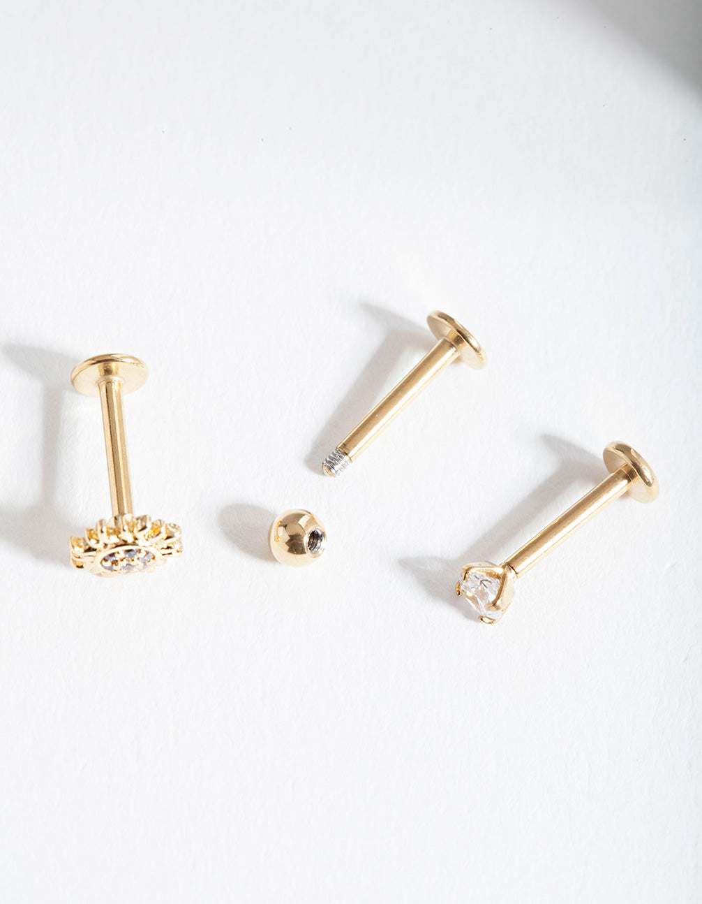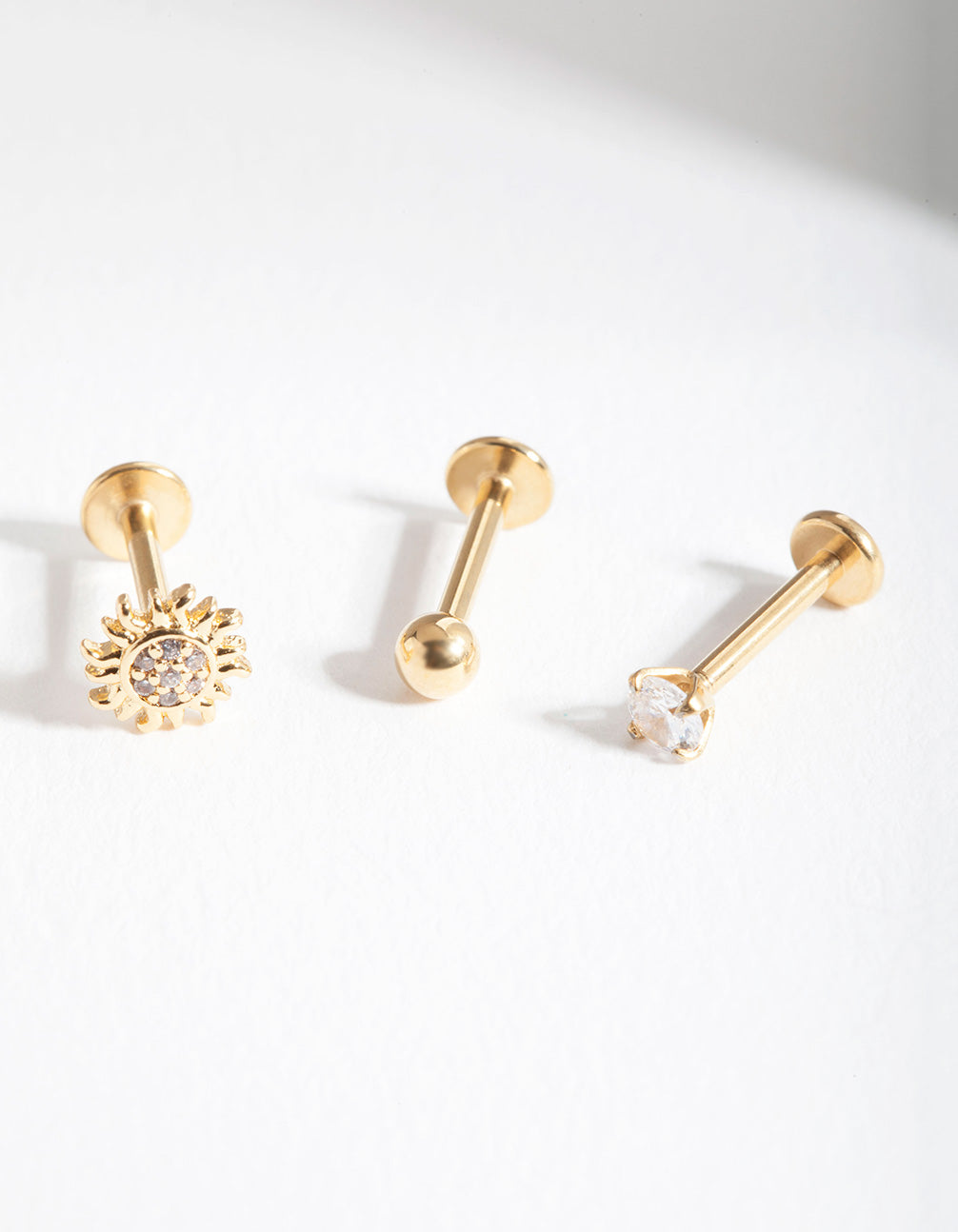 Gold Surgical Steel Cubic Zirconia Sun Flat Back Earring Pack