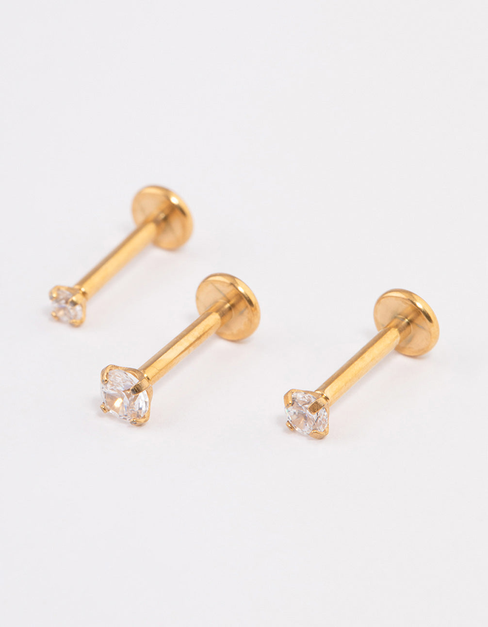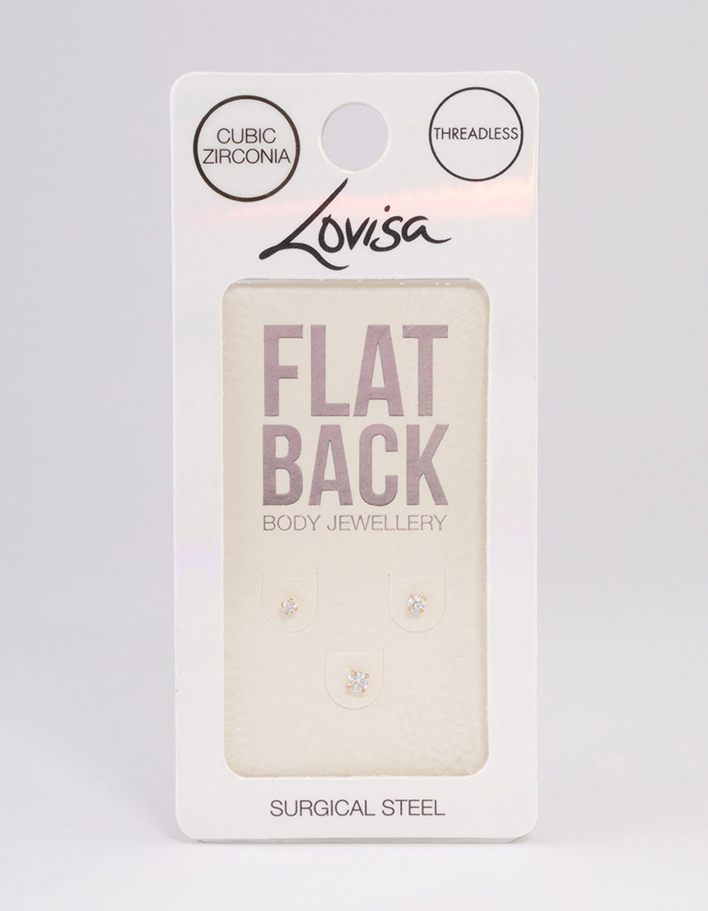 Gold Plated Surgical Steel Cubic Zirconia Stud Flat Back Pack