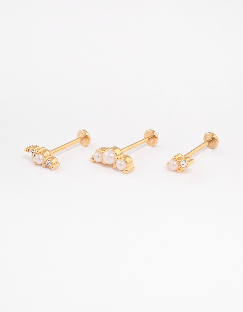 - This piercing pack contains three individual flat backs with simple, pearl features for an elegant touch.