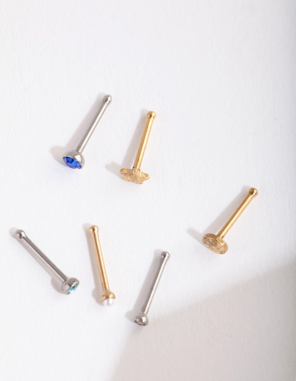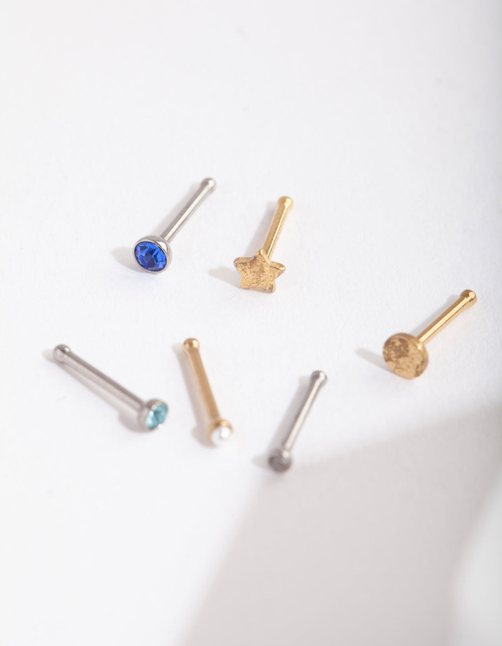 Mix Metal Sapphire Star Nose Stud 6-Pack
