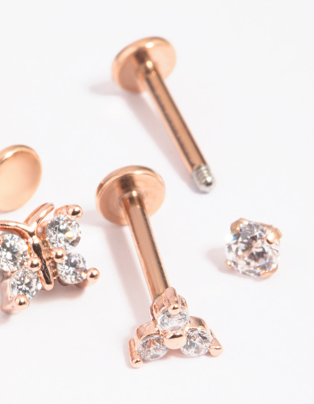 Rose Gold Plated Surgical Steel Butterfly Flat Back Pack
