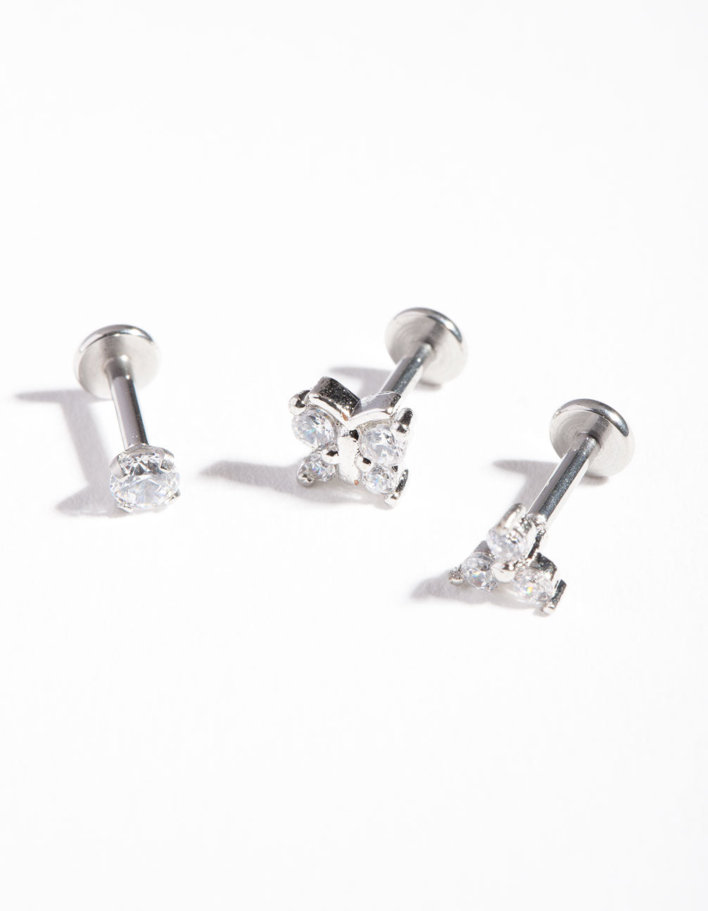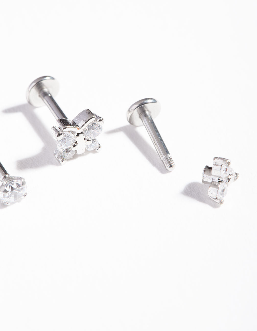 If you love piercings, the surgical steel body jewellery range from Lovisa is perfect for you. Pick up one of these reliable and timeless styles and curate your ear stack with Lovisa's collection of clickers, flat backs, barbells and more. This pack comes with a trio of flat back styles with a butterfly motif and diamante embellishments. They have surgical steel posts.
