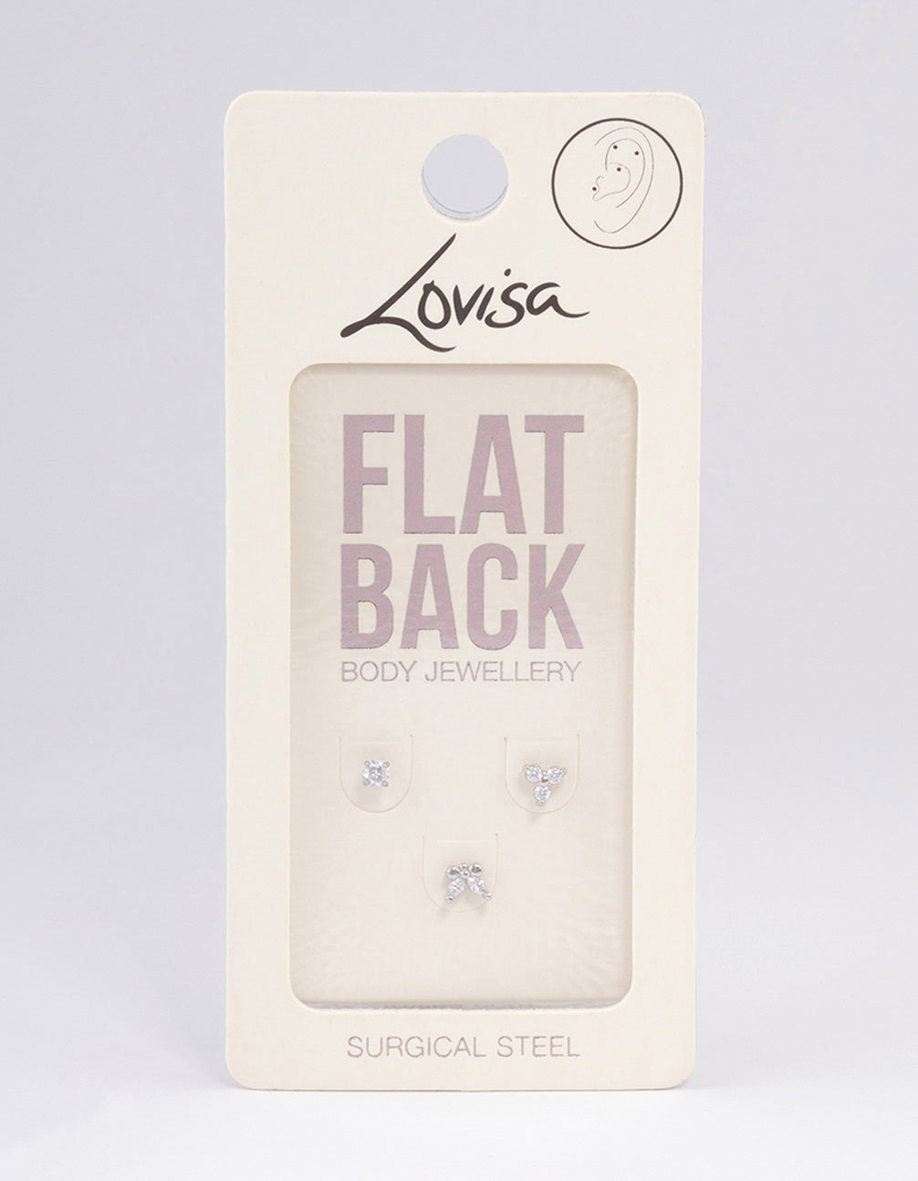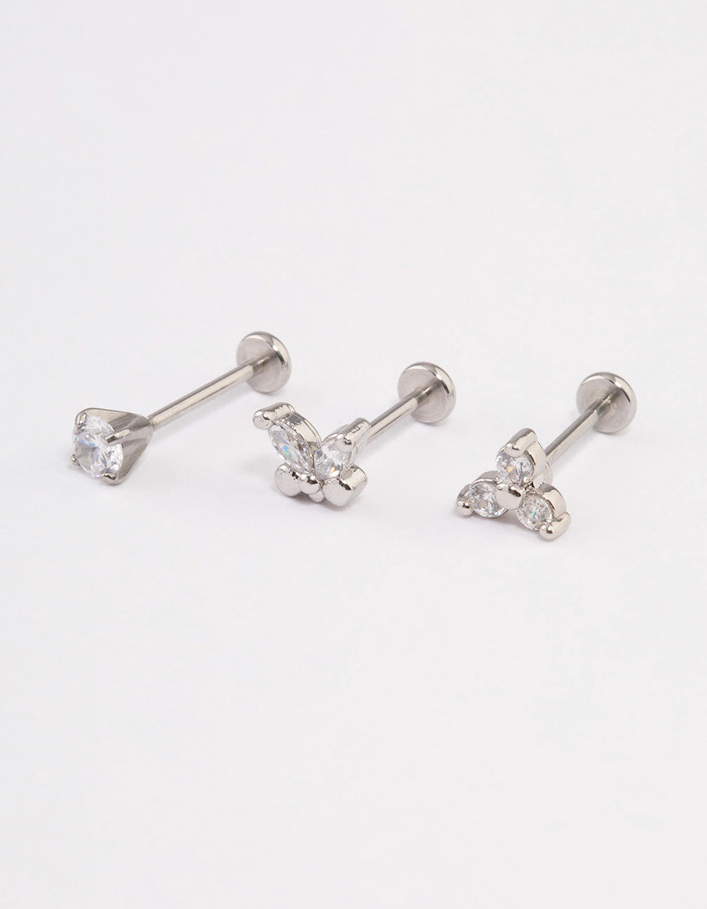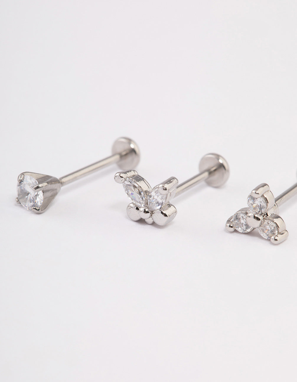 - This piercing pack contains three individual flat backs with cubic zirconia crystals in a butterfly formation for added interest.