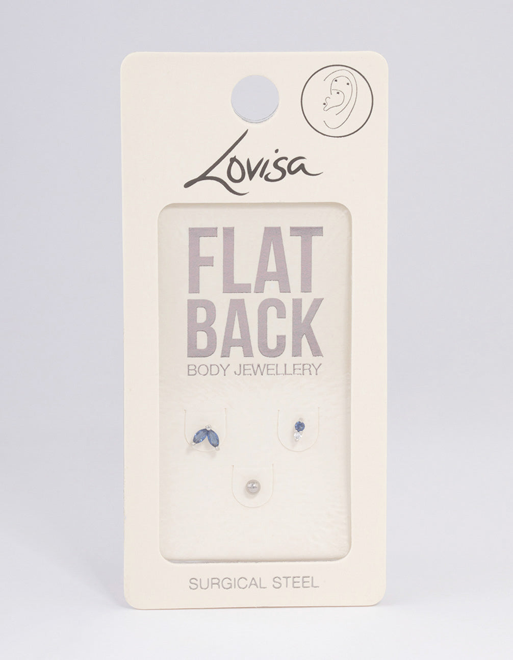 - This piercing pack contains three individual flat backs and features gorgeous, cubic zirconia crystals for added shine.