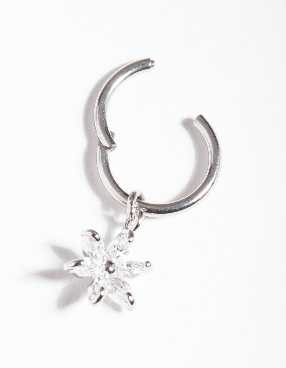 If you love piercings, the surgical steel body jewellery range from Lovisa is perfect for you. Pick up one of these reliable and timeless styles and curate your ear stack with Lovisa's collection of clickers, flat backs, barbells and more. This hinged ring features a silver-toned setting and a floral motif with cubic zirconia embellishments. It has a surgical steel post.